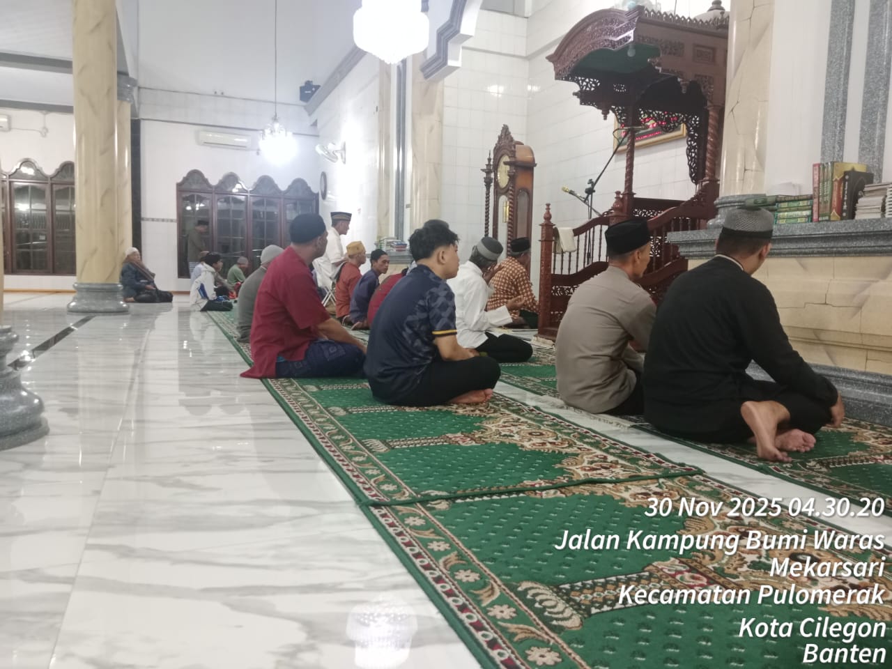 Cilegon – Personil Kskp Merak Polres Cilegon Polda Banten menggelar kegiatan Pembinaan Rohani dengan shalat subuh keliling di Masjid Yang ada Di Daerah hukum Polsek Kp Merak Polres Cilegon Polda Banten, Senin (01/12/2025).