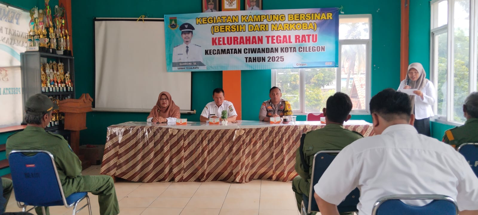 Cilegon - Bertempat di Aula Kantor Kelurahan Tegalratu, Bhabinkamtibmas Kelurahan Tegalratu Polsek Ciwandan Polres Cilegon Polda Banten BRIGADIR Dede Abu Hadiri Sosialisasi Kampung Bersih Narkoba (Bersinar), Rabu (03/12/2025).