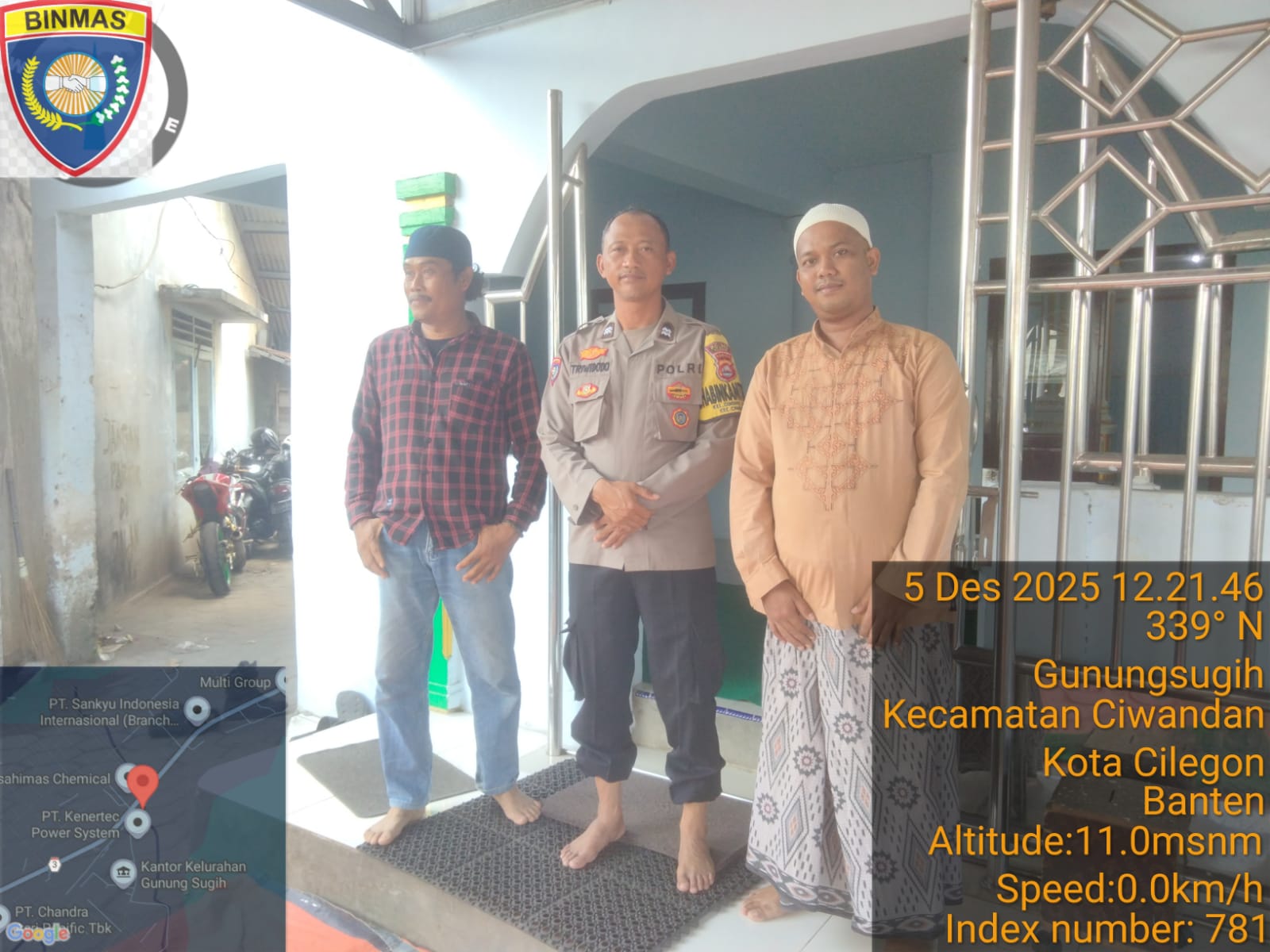 Cilegon - Dalam Rangka Memakmurkan Masjid Dan Sambang,Bhabinkamtibmas Polsek Ciwandan Polres Cilegon Polda Banten Sholat Berjama’ah dan Bersilaturahmi kepada para tokoh Agama sebagai upaya meningkatkan Ukhuwah Islamiyah dalam menjalin silaturahmi dan membangun komunikasi yang baik, Jum’at (05/12/2025).