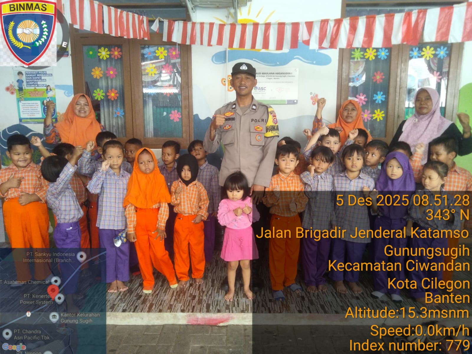 Cilegon - Kenalkan Sosok Polri Kepada Anak-anak,Bhabinkamtibmas Polsek Ciwandan Polres Cilegon Polda Banten AIPTU Tri Widodo melaksanakan kegiatan Polisi Sahabat Anak (PSA), Jum'at (05/12/2025).