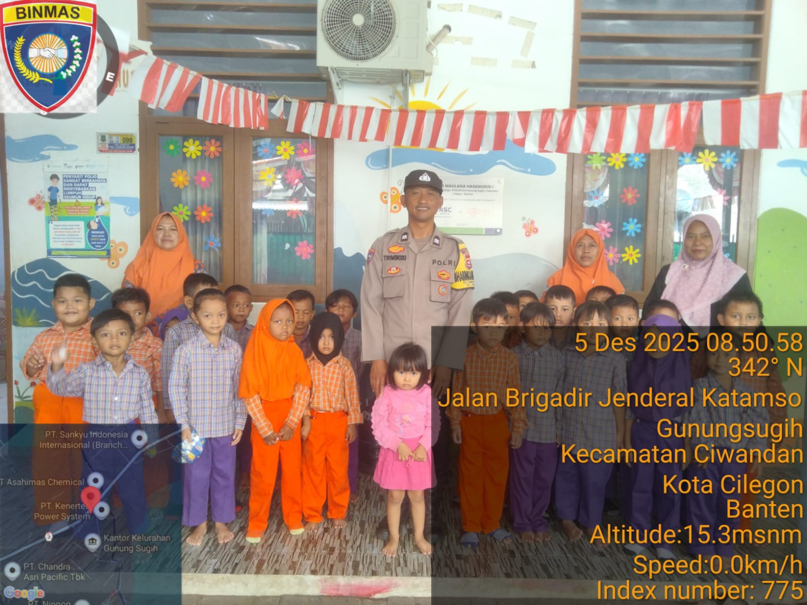 Cilegon - Kenalkan Sosok Polri Kepada Anak-anak,Bhabinkamtibmas Polsek Ciwandan Polres Cilegon Polda Banten AIPTU Tri Widodo melaksanakan kegiatan Polisi Sahabat Anak (PSA), Jum'at (05/12/2025).