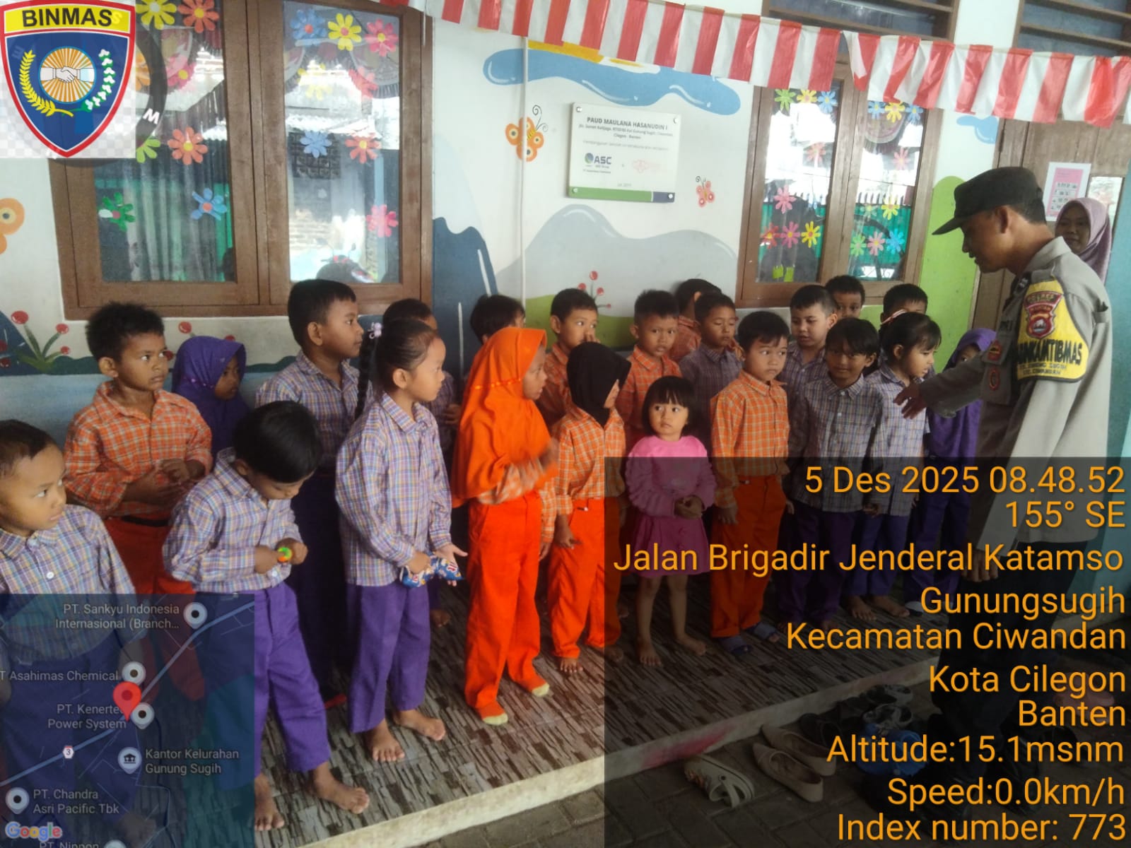 Cilegon - Kenalkan Sosok Polri Kepada Anak-anak,Bhabinkamtibmas Polsek Ciwandan Polres Cilegon Polda Banten AIPTU Tri Widodo melaksanakan kegiatan Polisi Sahabat Anak (PSA), Jum'at (05/12/2025).
