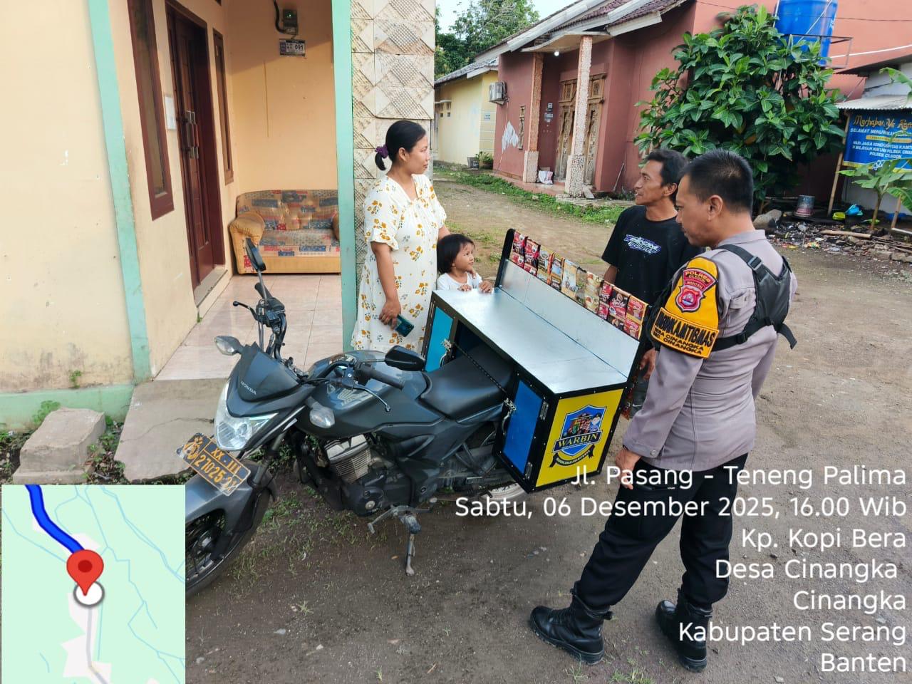 Kapolres Cilegon Polda Banten AKBP Dr Martua Raja Taripar Laut Silitonga melalui Kapolsek Cinangka Polres Cilegon Polda Banten IPTU Rusnata Mengatakan Warung Bhabinkamtibmas adalah tempat untuk warga menyampaikan saran dan masukan kepada polisi Bhabinkamtibmas di desa. Suasana yang dibuat adalah santai dan bersahaja sebagaimana kumpul kumpul di warung"Fungsi dari kegiatan ini adalah untuk menjaring informasi yang berkembang di masyarakat dan menjadi garda terdepan dalam penyelesaian masalah yang ada di lingkungan warga terpencil agar tidak berkembang menjadi masalah yang lebih besar dan dapat mengganggu harkamtibmas,