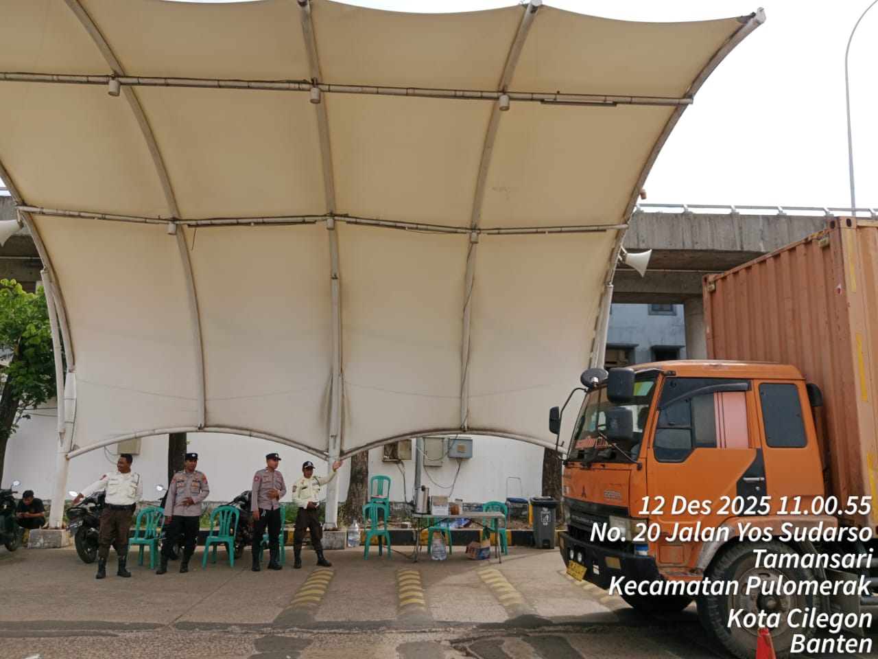 Cilegon - Personel Polsek Kskp Merak Polres Cilegon Polda Banten melaksanakan sambang dan patroli kawasan pelabuhan merak dalam rangka menjaga Harkamtibmas di Kawasan Pelabuhan Merak, Jumat (12/12/2025).