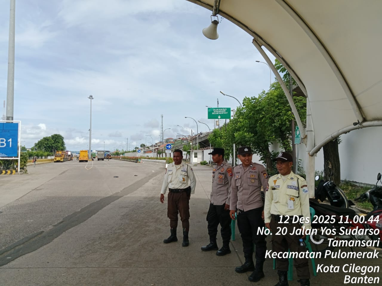 Cilegon - Personel Polsek Kskp Merak Polres Cilegon Polda Banten melaksanakan sambang dan patroli kawasan pelabuhan merak dalam rangka menjaga Harkamtibmas di Kawasan Pelabuhan Merak, Jumat (12/12/2025).