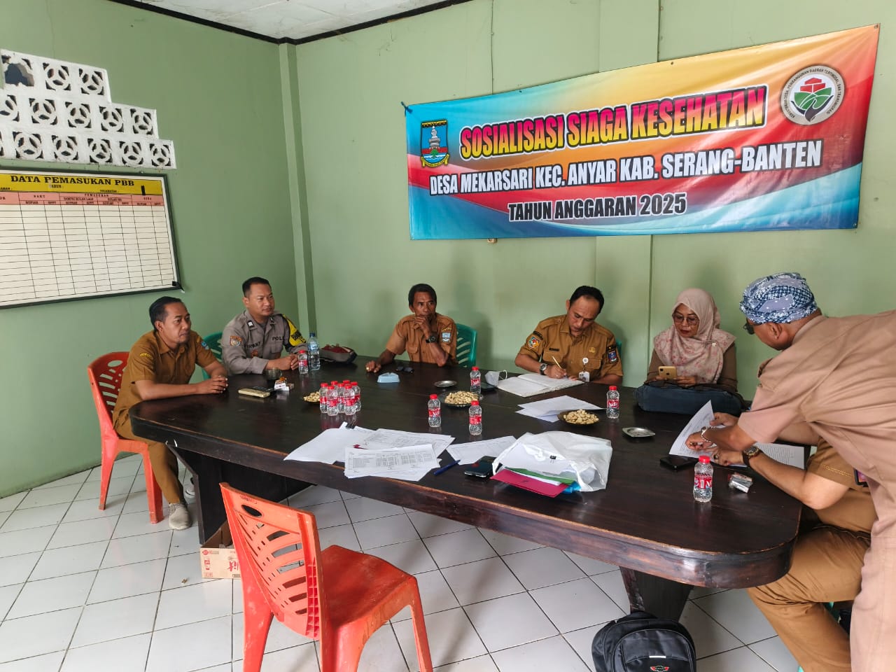 Bhabinkamtibmas Polsek Anyar Polres Cilegon Polda Banten menghadiri kegiatan sosialisasi siaga kesehatan yang dilaksanakan oleh Pemerintah Desa Mekarsari Kecamatan Anyar Kabupaten Serang. senin (15/12)