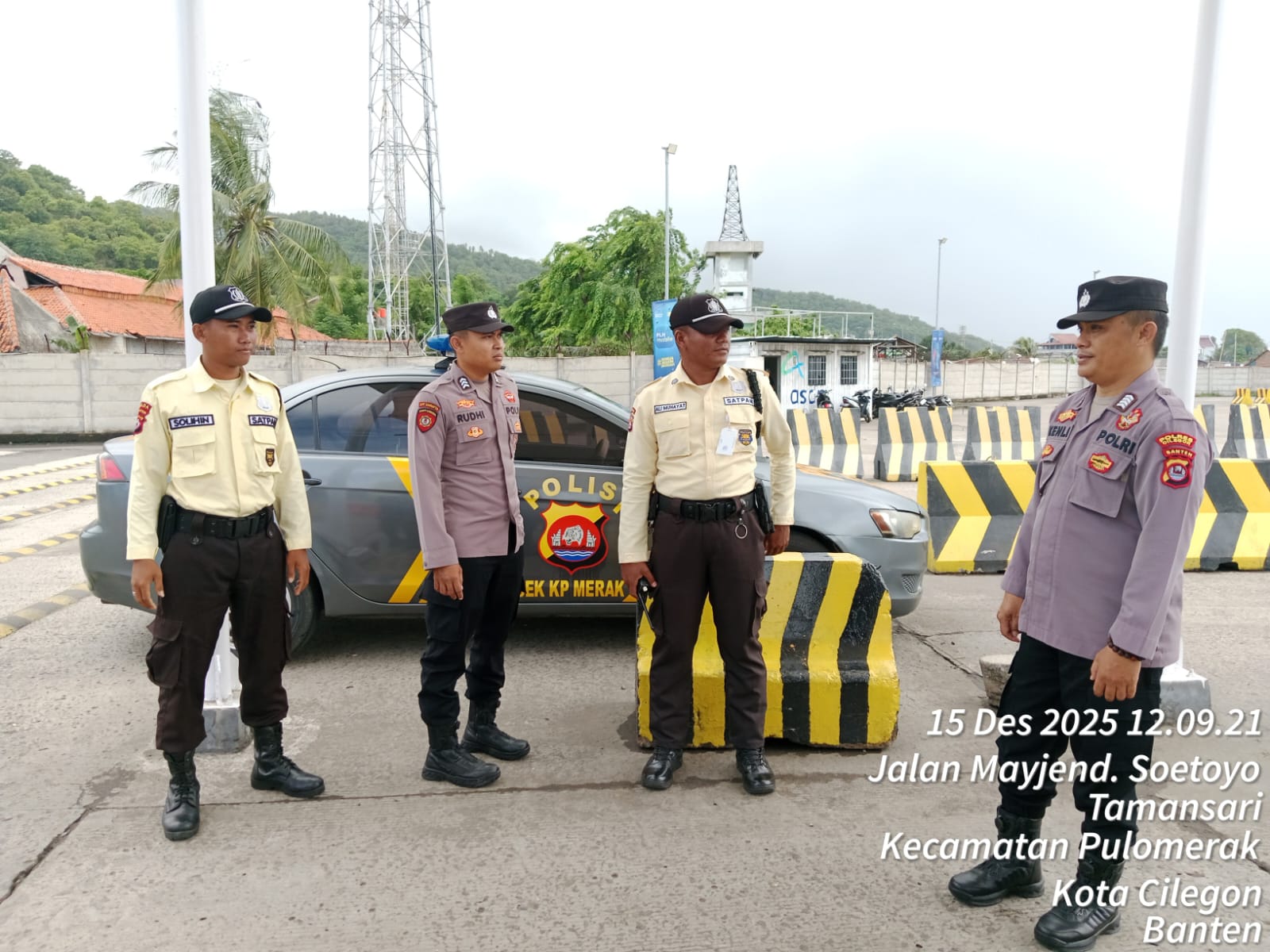 Cilegon - Personel Polsek Kskp Merak Polres Cilegon Polda Banten melaksanakan sambang dan patroli kawasan pelabuhan merak dalam rangka menjaga Harkamtibmas di Kawasan Pelabuhan Merak, Senin (15/12/2025).