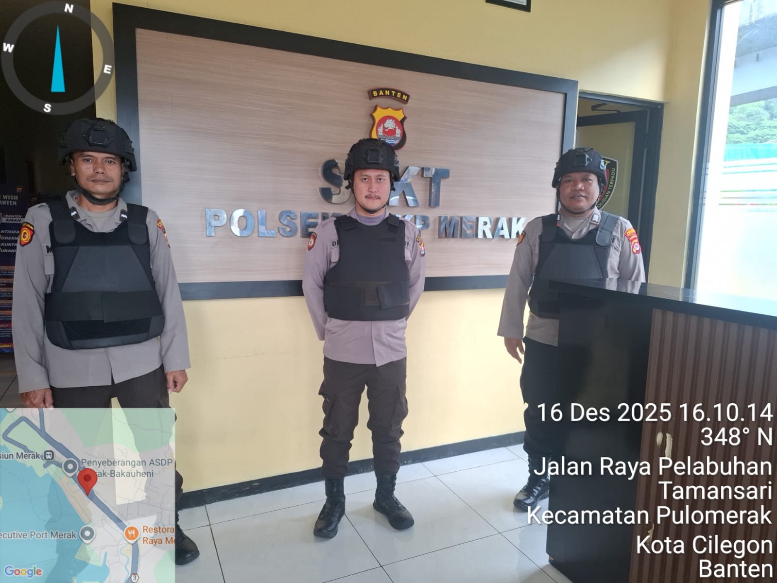 Cilegon - Personel piket jaga Polsek Kskp Merak Polres Cilgon Polda Banten melaksanakan siaga 1 Polsek pelaksanaan Sispam Mako oleh piket siaga dipimpin oleh Kspk Polsek Kskpy Merak Polres Cilegon Polda Banten, Selasa (16/12/2025).