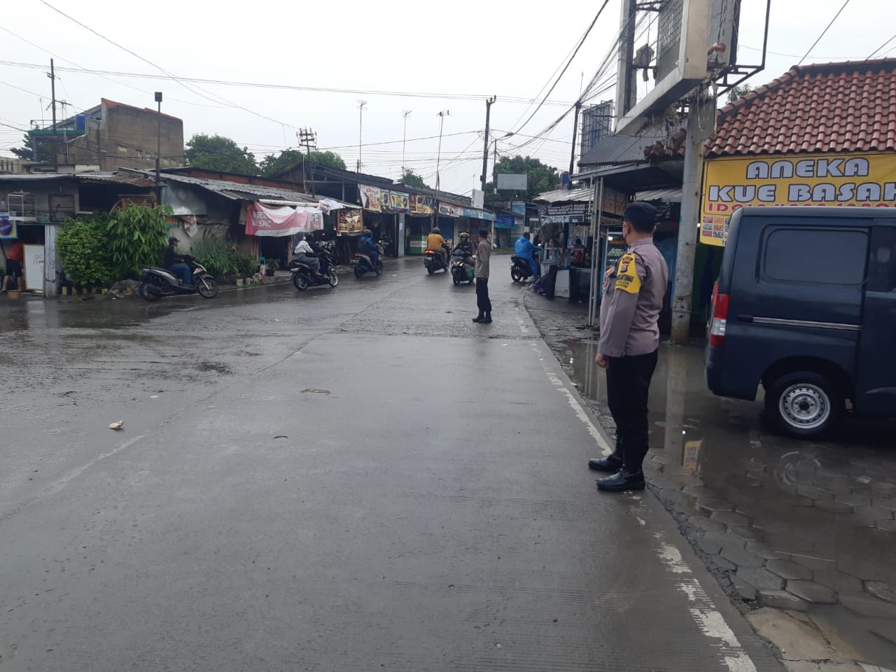 Strong Point Anggota Samapta Polsek Cilegon urai kepadatan kendaraan.