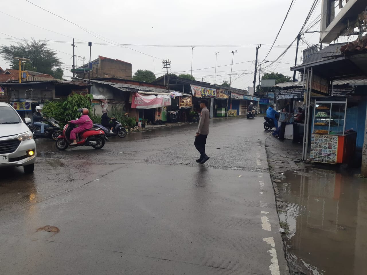 Strong Point Anggota Samapta Polsek Cilegon Polres Cilegon urai kepadatan kendaraan.