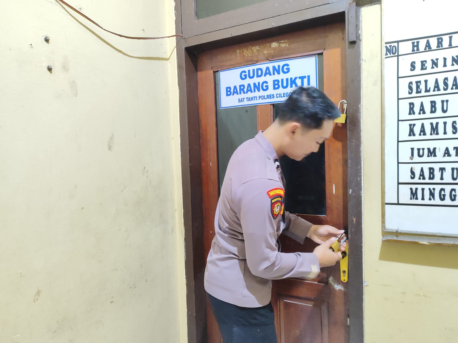 Piket Sat Tahti Melaksanakan Kegiatan Pengecekan Barang Bukti Di Sattahti Polres Cilegon