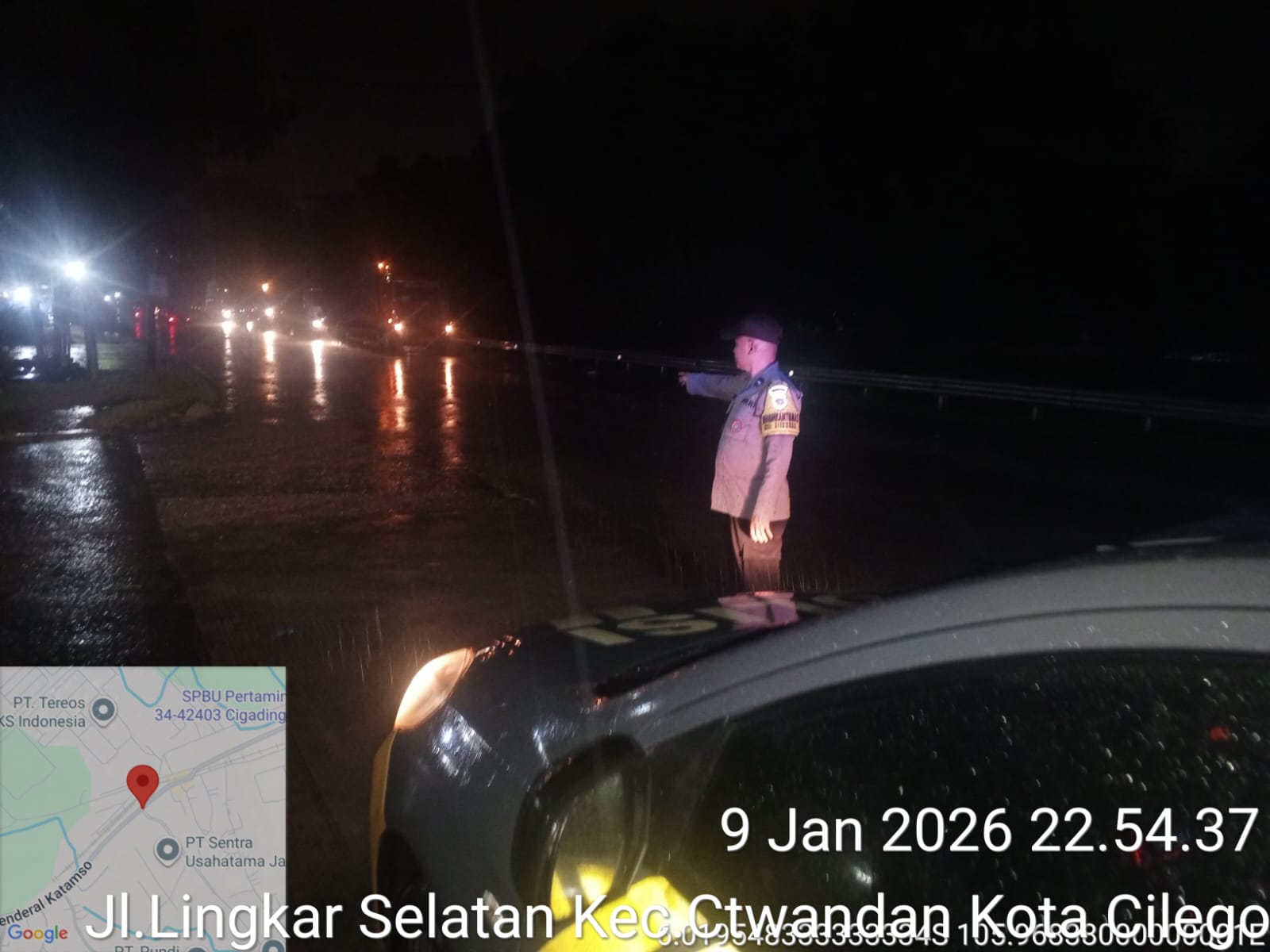 Hasil patroli menunjukkan bahwa situasi masih aman dan kondusif, dengan debit air di Jembatan Sungai Indocement/Batu Bara, Lingkungan Lijajar, Kelurahan Tegal Ratu, Kecamatan Ciwandan, masih di bawah batas normal. Belum ditemukan dampak cuaca ekstrem seperti banjir, tanah longsor, atau pohon tumbang di daerah Hukum Polsek Ciwandan.