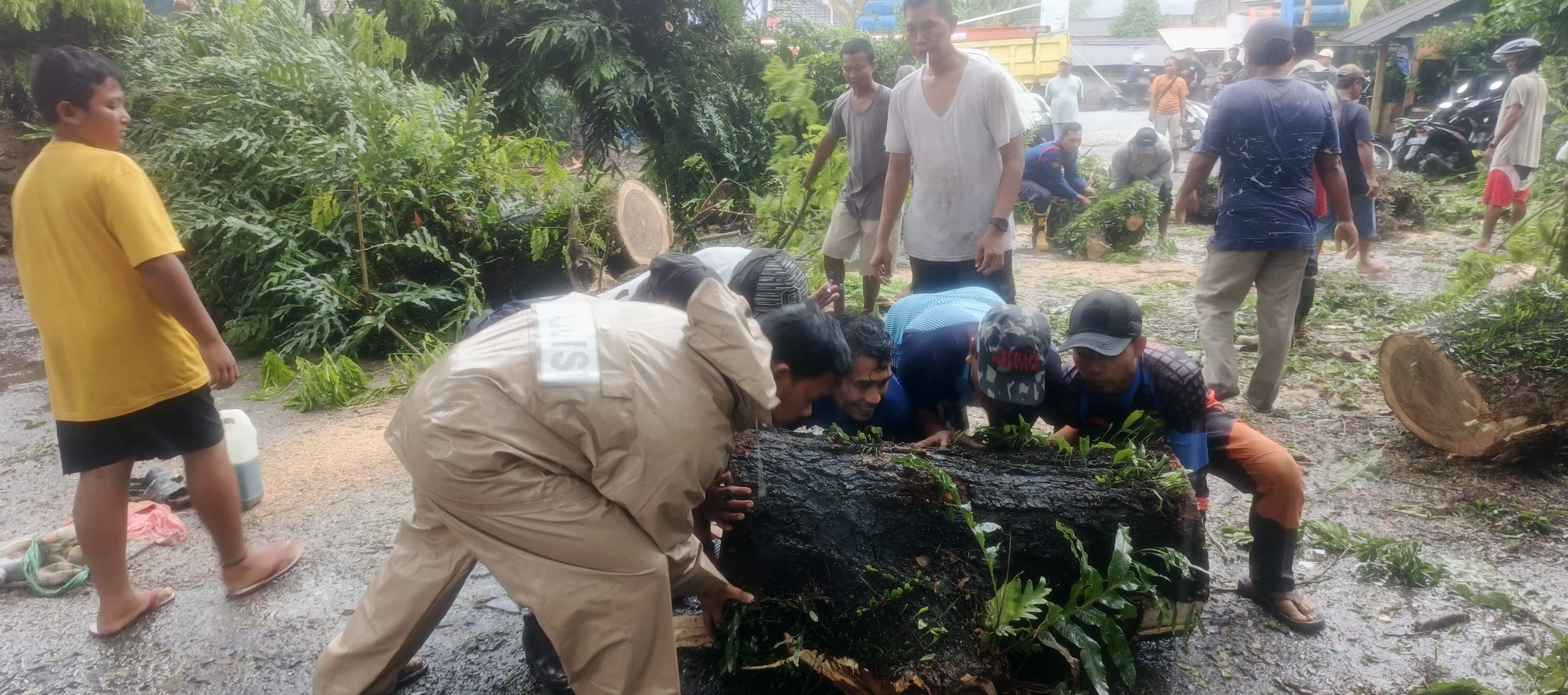 Polsek Anyar Evakuasi pohon tumbang yang diakibatkan Oleh hujan lebat dan angin kencang