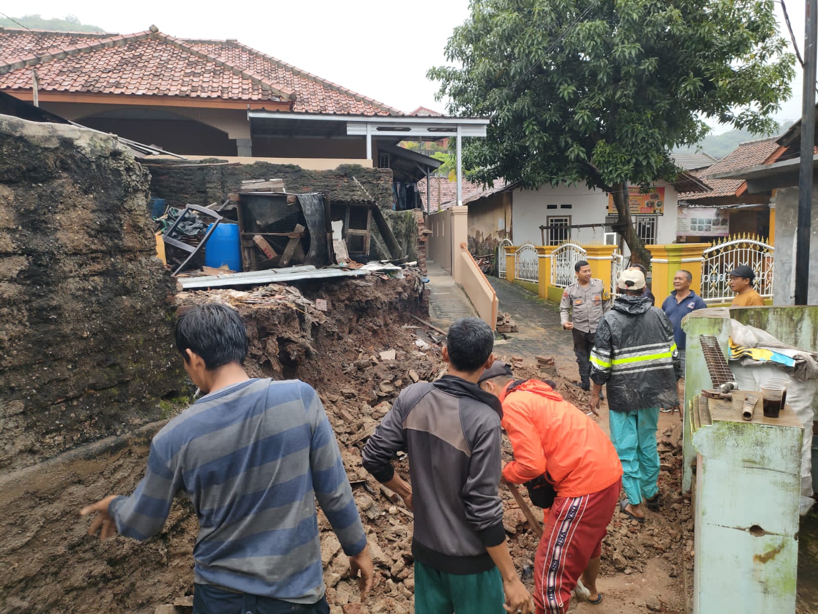 Setelah menerima laporan dari warga pada pagi hari, Bripka Agustoni langsung mendatangi lokasi kejadian. Bersama Lurah Kotabumi Ibu Nurul Jannah dan Babinsa Serma. Gatot S, tim melakukan pengecekan kondisi lokasi, membantu mengamankan area terdampak, serta memberikan bantuan pertama kepada keluarga yang terkena dampak longsor. Beberapa bagian tanah pekarangan rumah warga mengalami pergeseran akibat kondisi cuaca yang lembab beberapa hari terakhir.
