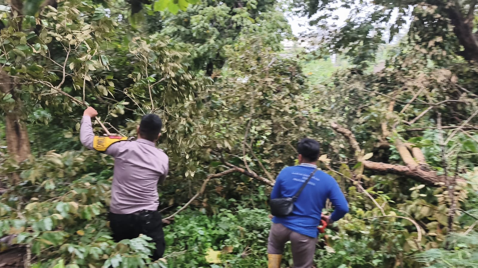 Bantu Bersihkan Pohon Tumbang,Bhabinkamtibmas Peduli Dengan Masyarakat