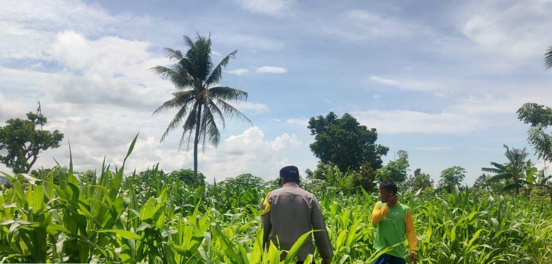 Dalam kegiatan monitoring ini, Bhabinkamtibmas meninjau langsung kondisi lahan jagung.