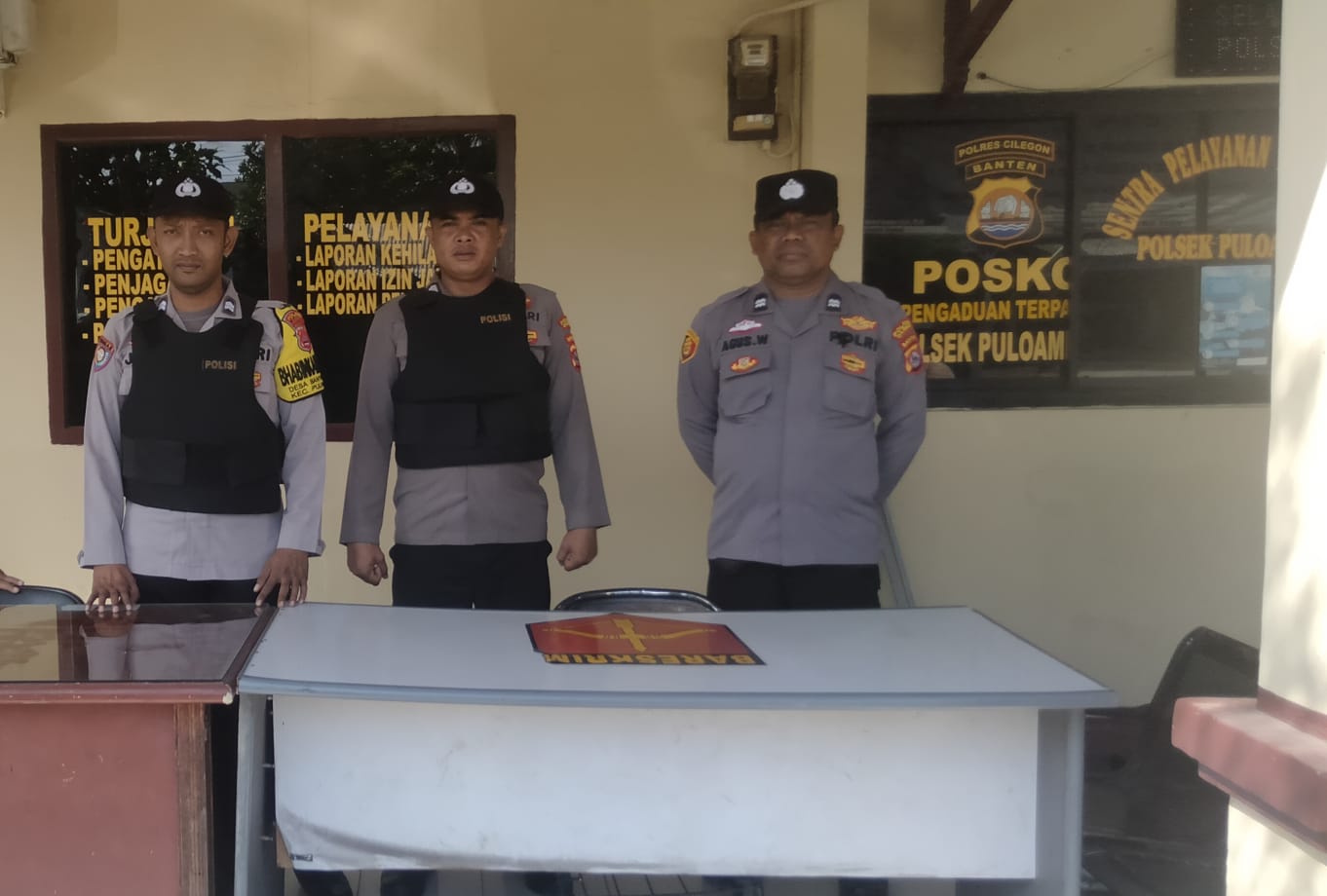 Kapolres Cilegon Polda Banten AKBP Martua Raja Taripar Laut Silitonga melalui Kapolsek Puloampel IPTU FURQON SAIBATIN SINGAJURU. membenarkan bahwa dalam rangka untuk mencegah berbagai ancaman dan gangguan pada Mako Polsek Puloampel, personel kita rutin melakukan penjagaan di pos penjagaan Mapolsek Puloampel Polres Cilegon, dimana pengamanan ini dilaksanakan 1×24 jam,” ucapnya.