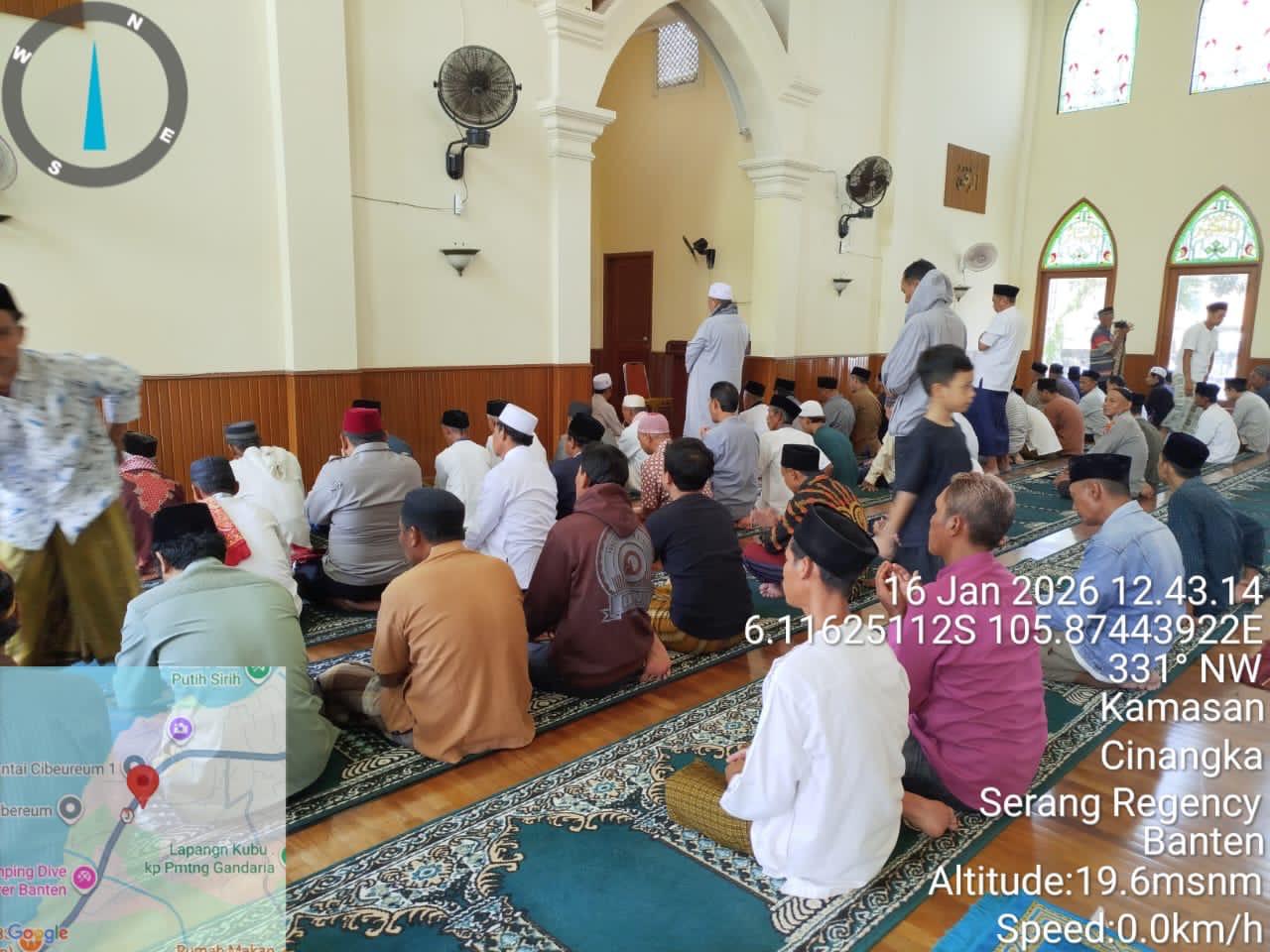 *POLRES CILEGON* - Kapolsek Cinangka Polres Cilegon Polda Banten dan Jajaran melaksanakan giat Juma't keliling dalam rangka silaturahmi menjalin kemitaraan dan menjaga Harkamtibmas di Desa Binaannya sebagai bentuk mendukung Program Quick Wins Presisi Polri, Jumat (16/01/2026).