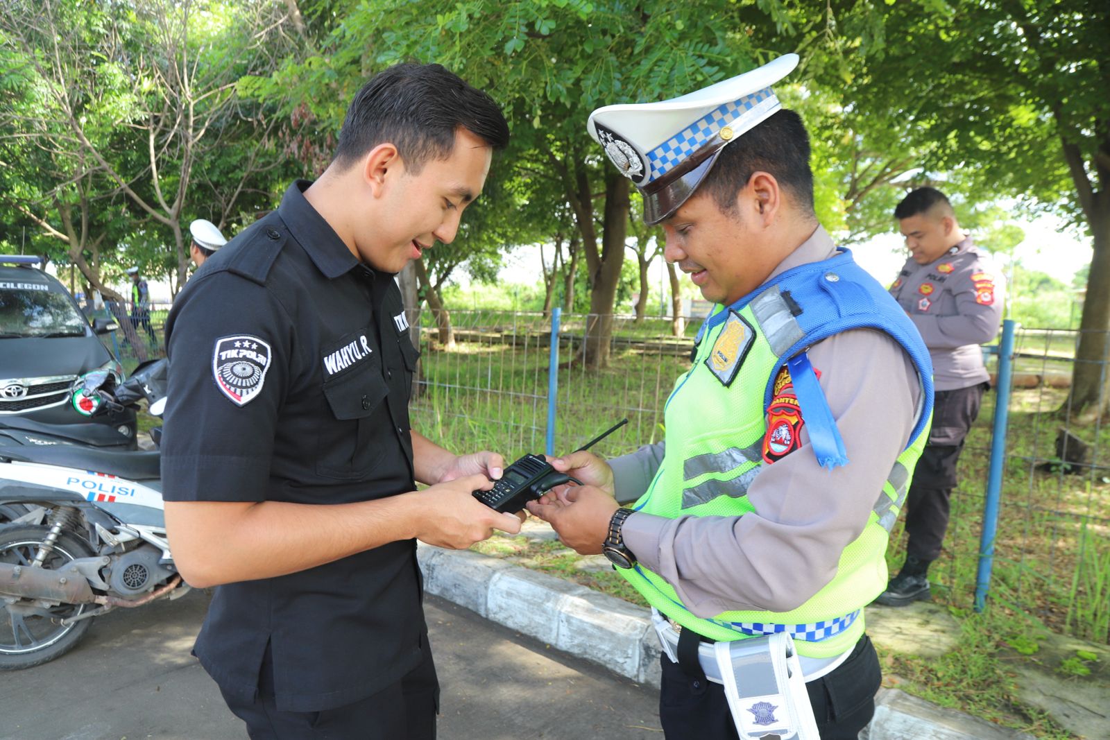 Anggota Tik Polres Cilegon Menyiapkan Sarana dan Prasarana Alkom Dalam pelaksanaan tugas tersebut anggota TIK Polres Cilegon yang bertanggung jawab untuk menyiapkan peralatan sarana alkom berupa handy talky. Selain itu agar di tidak ada gangguan pada jaringan, sebelum pelaksanaan anggota TIK melakukan pemeriksaan terhadap sarana dan prasarana tersebut . Satu jam sebelum sarana alkom digunakan. Kapolres Cilegon AKBP. DR. MARTUA RAJA TARIPAR LAUT SILITONGA. melalui Kasi TIK AIPTU Suwanto, S.H. menyampaikan bahwa “untuk menunjang kelancaran penyampaian informasi anggota TIk Polres Cilegon selalu memeriksa sarana dan prasarana tersebut, sebelum maupun pada saat pelaksanaan akan selalu di monitor”