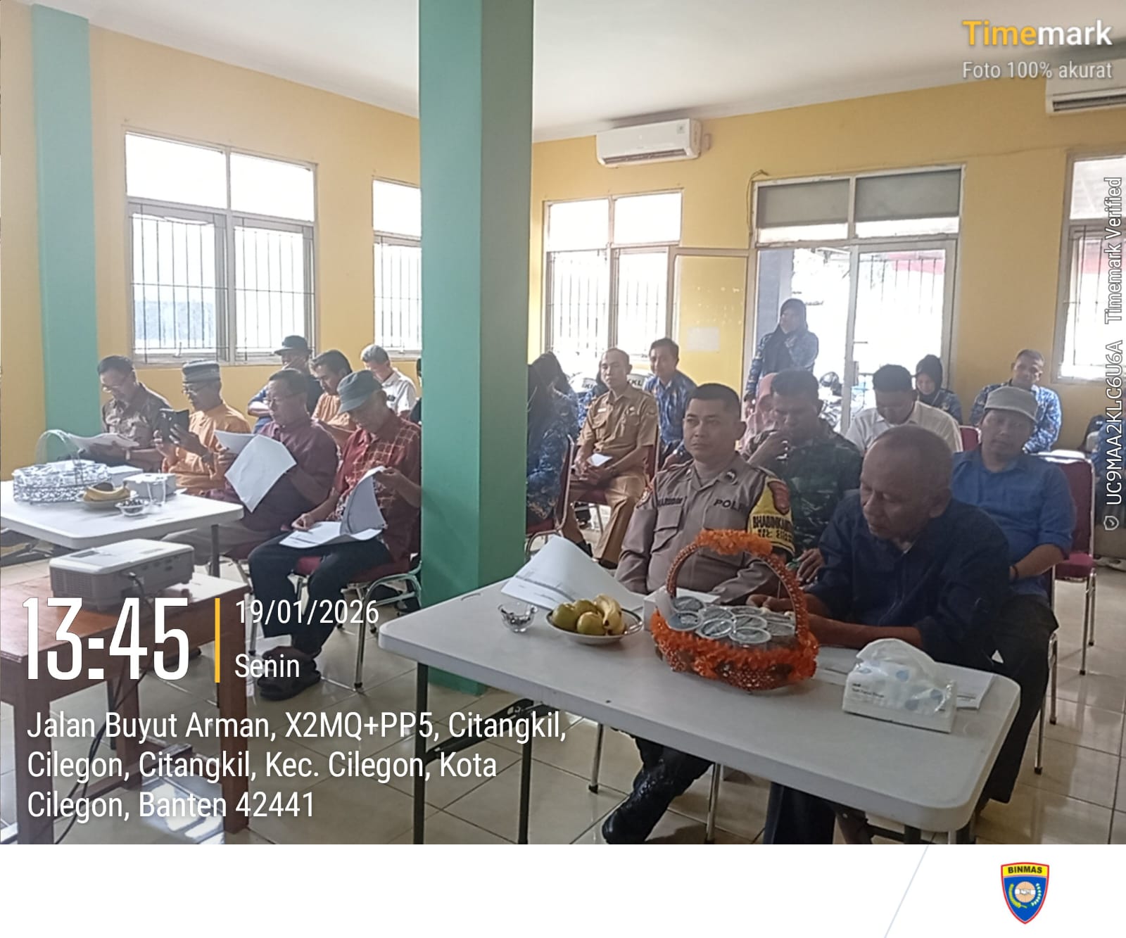 Cilegon - Bhabinkamtibmas Kelurahan Citangkil Polsek Ciwandan Polres Cilegon Polda Banten AIPDA Warudin Menghadiri kegiatan rapat Pra Musrenbangkel Tingkat Kelurahan yang bertempat di lingkungan Kelurahan Citangkil kecamatan Citangkil kota Cilegon, Senin (19/01/2026).