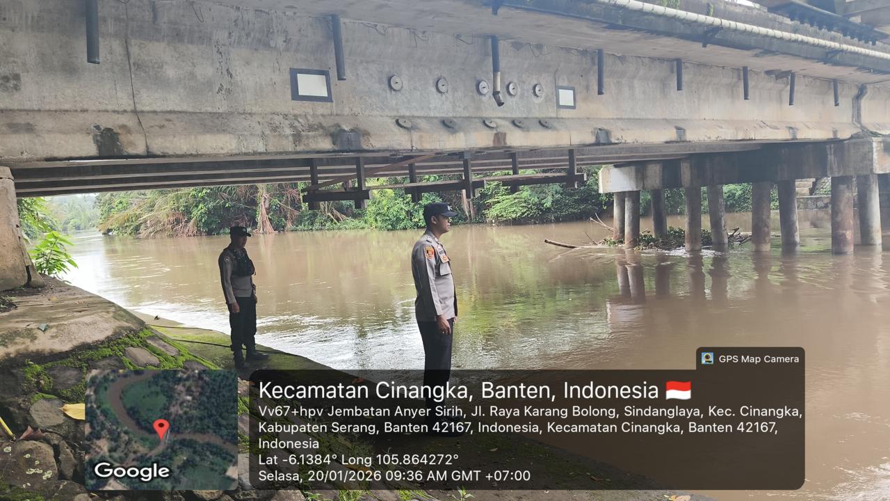 -POLRES CILEGON–Polda Banten. Babinkamtibmas Polsek Cinangka, meningkatkan pemantauan terhadap aliran sungai dan debit air di wilayahnya, terutama di sekitar Sungai Cidanau, Kecamatan Cinangka, Kab Serang. Hal ini dilakukan sebagai langkah antisipasi terhadap potensi banjir, terutama di musim penghujan. Selasa.(20-01-2026).