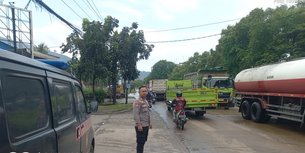 Personil Polsek Ciwandan Gerak Cepat Rekayasa Dan Pengalihan Lalu-Lintas Saat Terjadi Banjir.