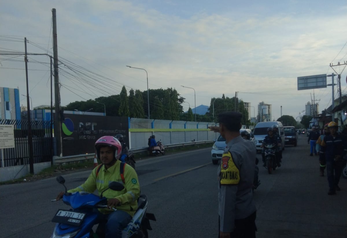 Cilegon - Dalam Mewujudkan Aksi Nyata Pelayanan Kepada Masyarakat,Personil Polsek Ciwandan Polres Cilegon Polda Banten Laksanakan Strong Poin Pengaturan Lalu-lintas Pagi,Selasa (03/02/2026).