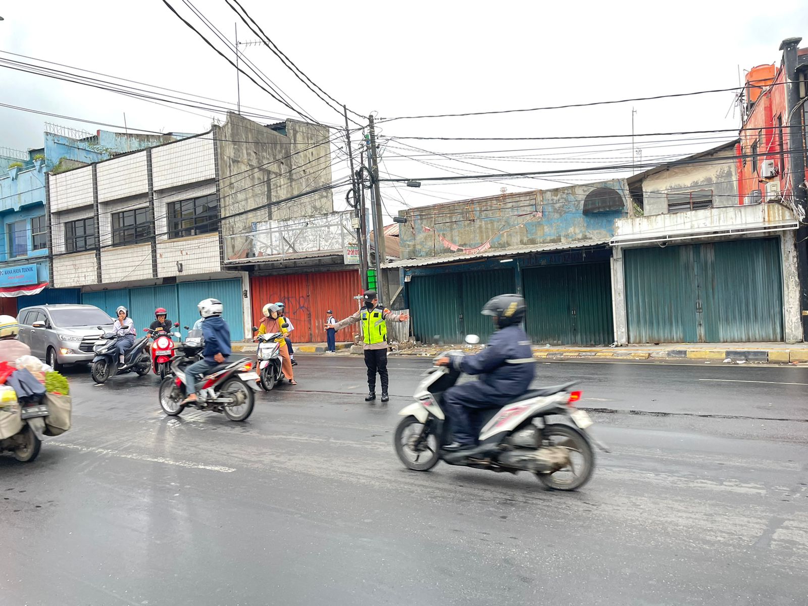 Cilegon,Polres Cilegon Polda Banten Pada Hari Selasa/03/01/2026 Pukul 06.30 Wib, Personil Siwas Polres Cilegon, Brigadir Hadi Sudrajat melaksanakan kegiatan pengaturan arus lalu lintas di Jalur Protokol jalan utama Kota Cilegon.