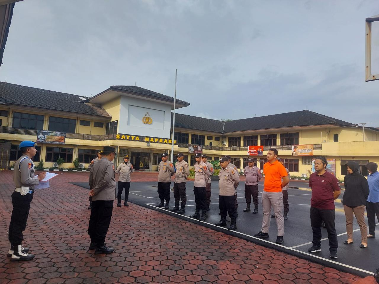 Anggota sium Polres Cilegon , tapil dalam Pellaksanaan rangka, kegiatan Apel ton Kerangka. Cilegon - Polres Cilegon Polda Banten - sium Polres Cilegon melaksanakan Apel Kerangka di Lapangan Apel Satya Haprabu Polres Cilegon Guna menunjukan kesiap siagaan pelayanan kepada masyarakat, sabtu (14/2/2026) Pukul 08.00 Wib. Kabag SDM Polres Cilegon selalu mengingatkan “Apel kerangka Penting untuk di laksanakan sebagai bentuk ke siap siagaan kita untuk hadir di tengah tengah masyarakat untuk melayani masyarakat sebagai mana tugas pokok Anggota Polri agar tericiptanya Harkamtibnas khususnya di Wilayah Kota Cilegon."Ujarnya Kegiatan ini sudah termasuk rutinatas personel Polres Cilegon menyadari kerawanan kejadian di akhir pekan kami selalu memberikan himbauan ke pada masyarakat untuk selalu hati hati dan waspada dalam menjalankan aktivitas di akhir pekan. Selain dari pada itu anggota yang terlibat apel tersebut melakukan pengaman di tempat ibadah guna kelancara dan ke amanan acara ibadah tersebut."Tutupnya (BL)