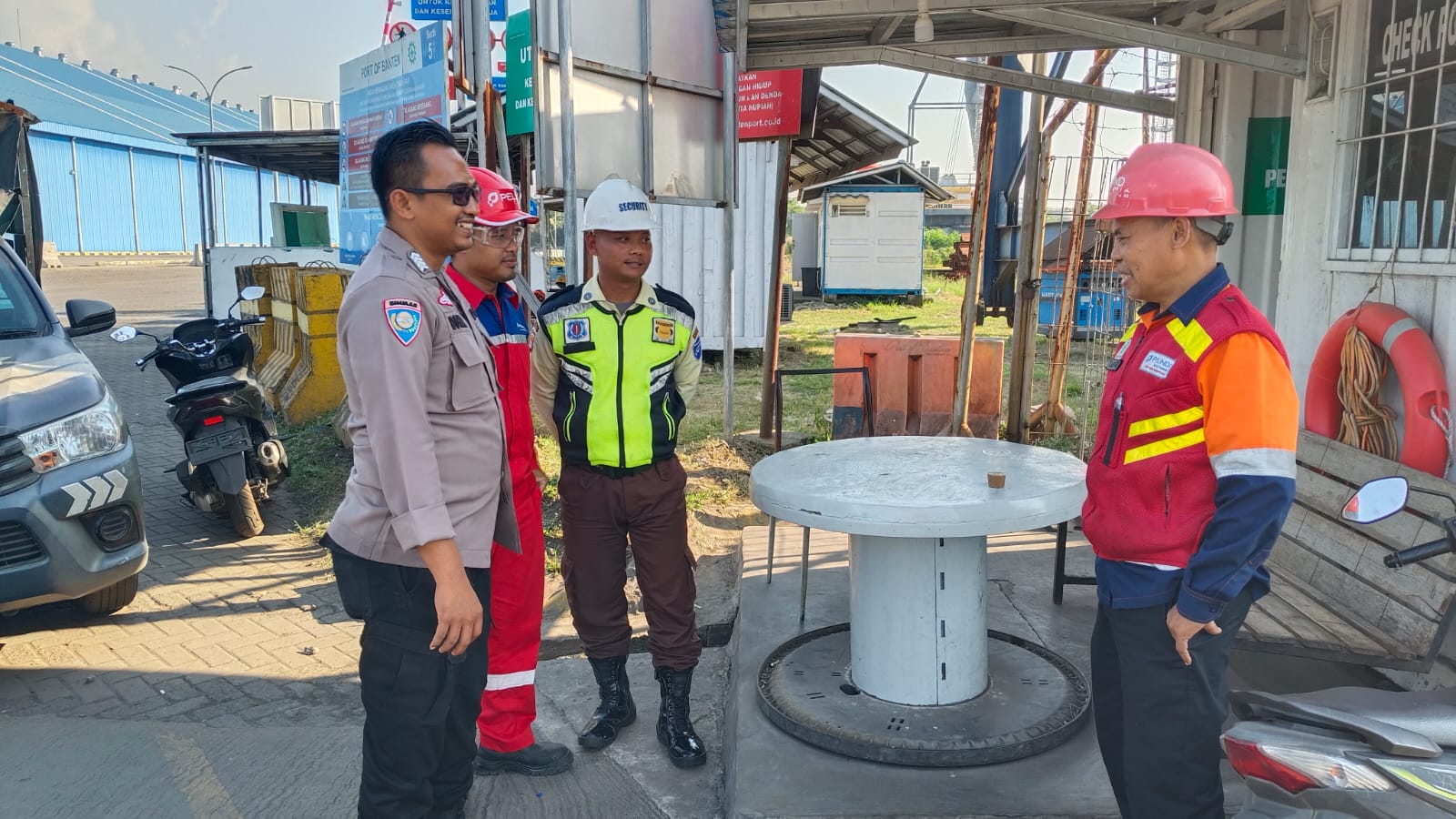 Personil Bhabinkamtibmas Polsek Kawasan Pelabuhan Banten Berbincang dengan Buruh Pelabuhan