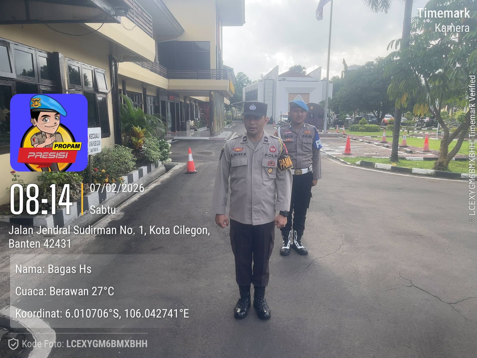 Cilegon, personel Satreskrim Polres Cilegon Polda Banten melaksanakan piket di penjagaan pintu masuk Polres Cilegon Polda Banten untuk memastikan mako Polres Cilegon dalam keadaan aman dan nyaman dalam melayani Masyarakat tanpa adanya gangguan kejahatan. Sabtu (07/02/2026).