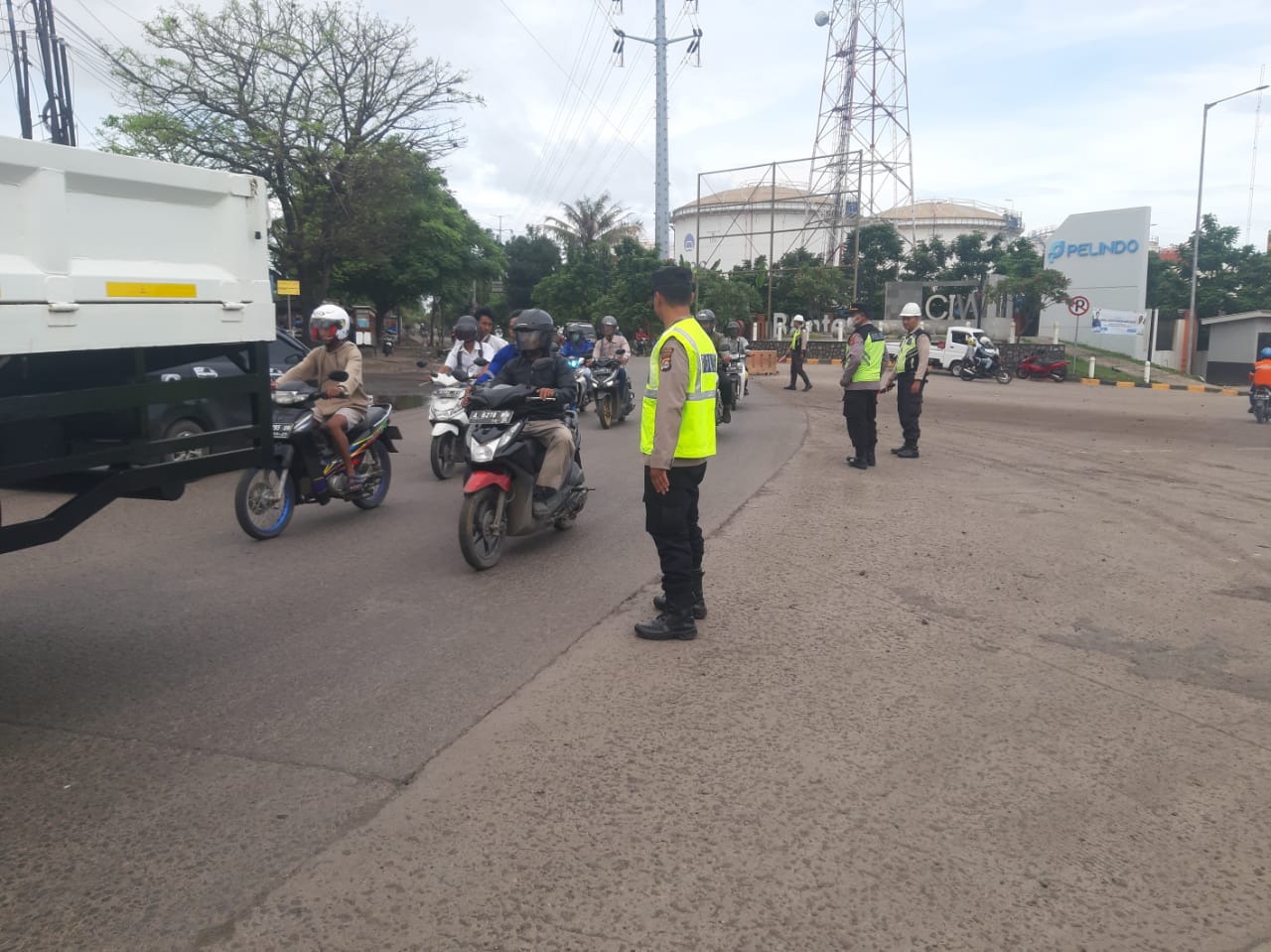 Kapolres Cilegon AKBP Martua Raja Taripar Laut Silitonga Melalui Kapolsek Kskp Banten Polres Cilegon AKP Fredo Leonard menyampaikan Laksanakan Pengamanan Sesuai plotinganya lakukan Pengaturan Supaya Arus Lalu Lintas tetap Berjalan lancar dan Pastikan tidak ada hambatan.