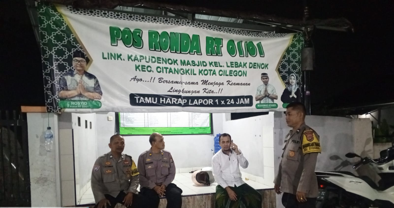 Cilegon - Bhabinkamtibmas Polsek Ciwandan Polres Cilegon Polda Banten kontrol Pos Ronda dan Berikan himbauan kepada pihak terkait dan warga, agar kegiatan Siskamling ditingkatkan lagi, Senin (08/02/2026).