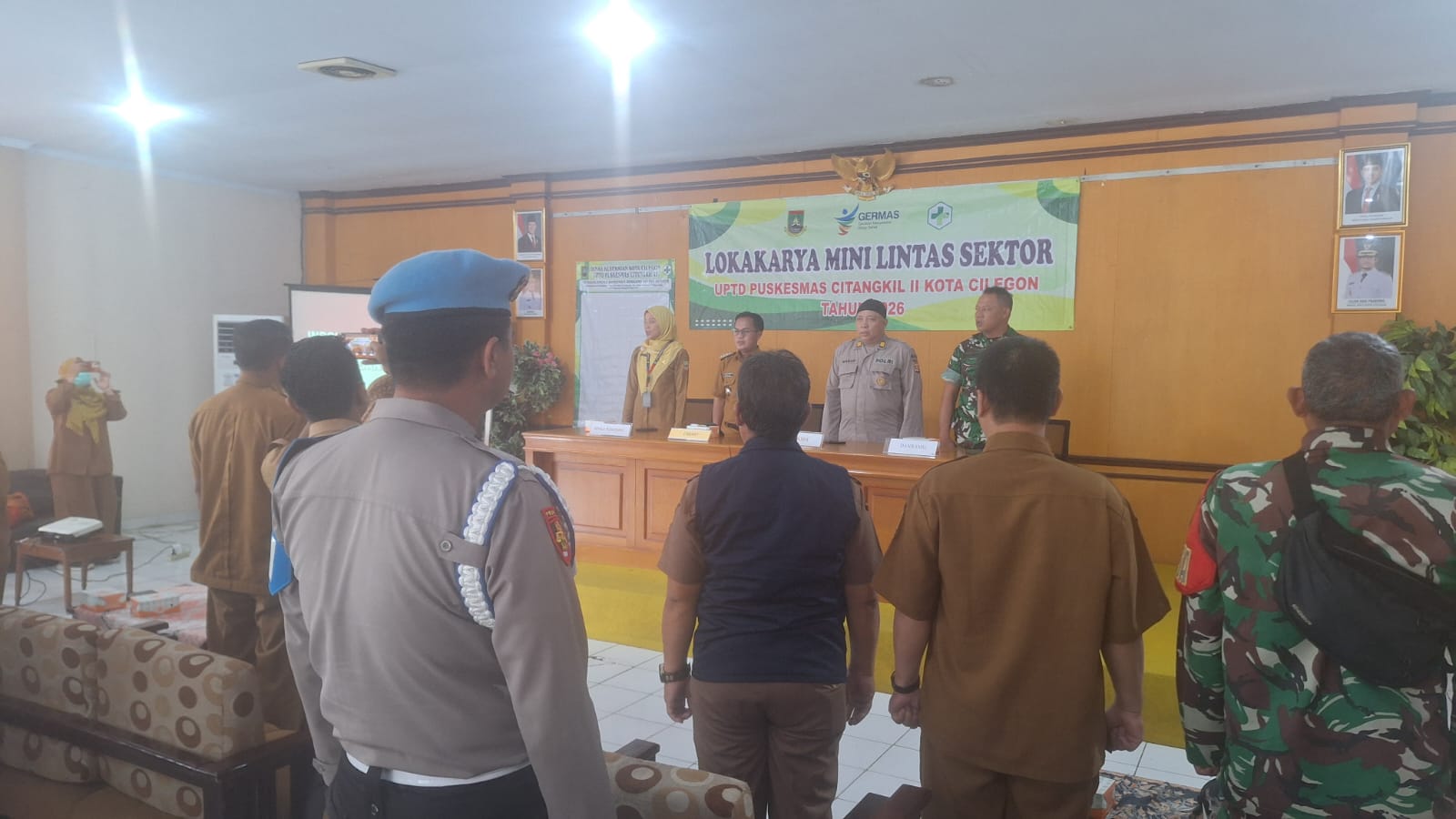 Cilegon - Wakapolsek Ciwandan Polres Cilegon Polda Banten AKP Uup M. Ma'ruf Bersama Personil Bhabinkamtibmas Polsek Ciwandan menghadiri kegiatan Lokakarya mini Lintas Sektor Bidang Kesehatan UPTD Puskesmas Citangkil 2 Tahun 2025 Di Aula Kantor Kecamatan Citangkil,Selasa (10/02/2026).