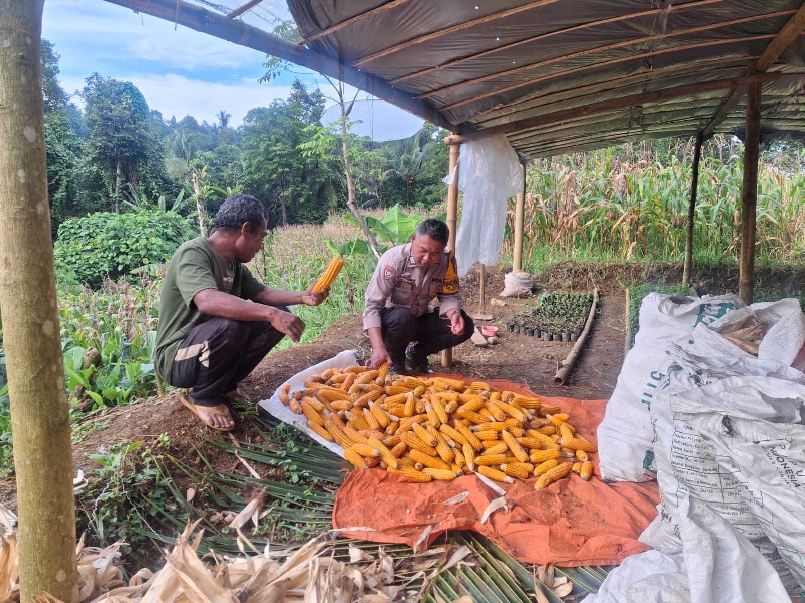 Mancak - Sebagai Pengemban Fungsi pawas, Harkamtibmas, Bhabinkamtibmas melaksanakan kegiatan monitoring panen jagung  tanam secara mandiri yang di garap bapak Subrata. Kamis  (12/02/2026).