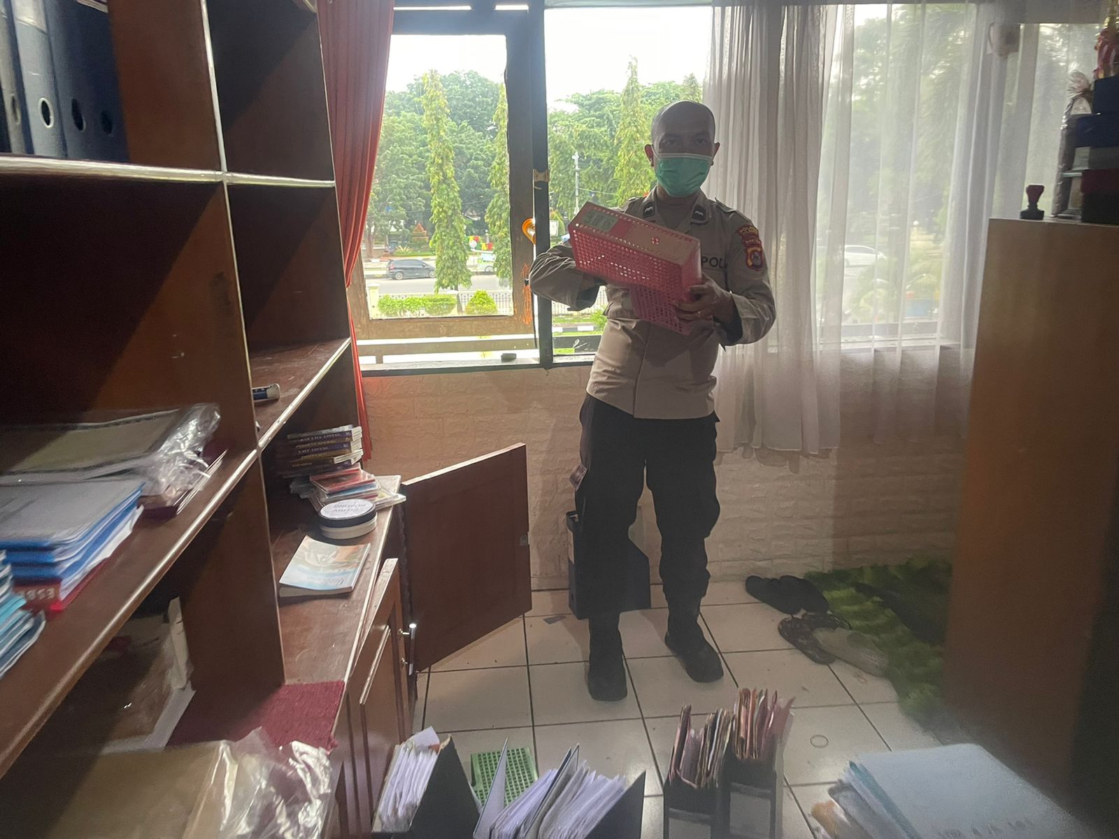 bersih-bersih ruangan dalam rangka mendukung Program Prioritas kapolda Banten