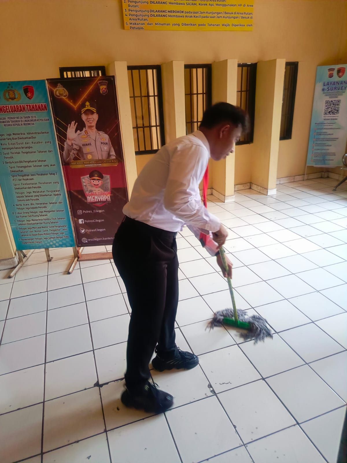 Kegiatan kebersihan  tahanan ini adalah salah satu bentuk  tugas dan tanggung jawab setiap personil anggota sattahti dalam menjaga dan merawat tahanan yang ada dirutan polres cilegon.