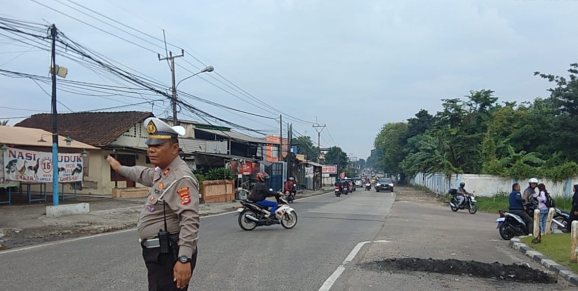 Lantas Polsek Ciwandan Pengaturan Lalu-lintas Jam Masuk Karyawan