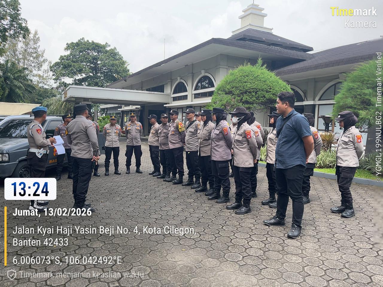 Polres Cilegon melaksanakan apel pengamanan dalam rangka kegiatan Rapat Pengurus Lengkap Kadin Kota Cilegon yang digelar di Ballroom Hotel The Royale Krakatau. Apel tersebut dipimpin oleh perwira pengendali dan diikuti oleh personel yang terlibat dalam surat perintah pengamanan.