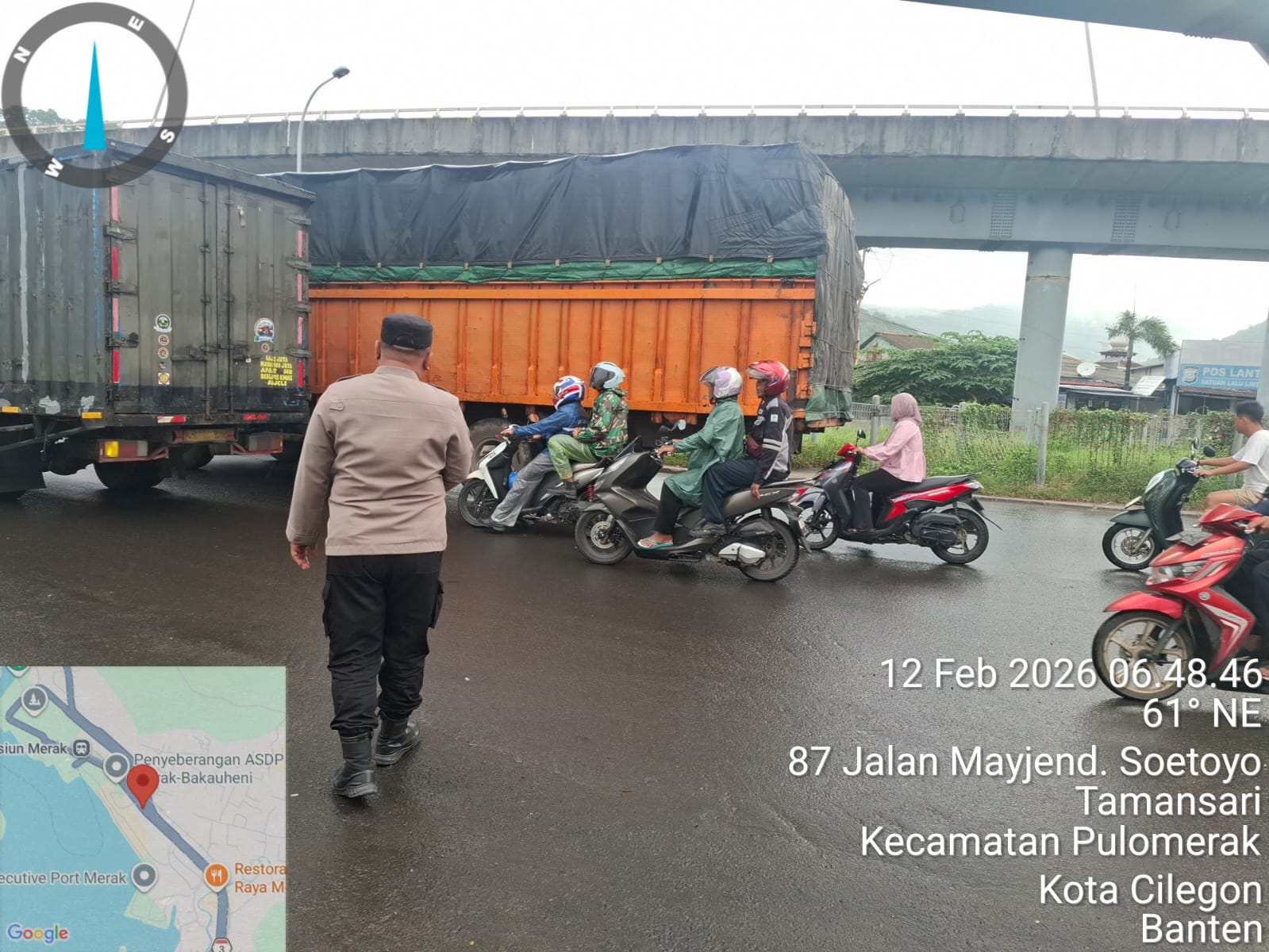 Kapolres Cilegon Polda Banten AKBP Martua Raja Taripar Laut Silitonga melalui Kapolsek Kskp Merak AKP Gusti Almasri P menyampaikan bahwa kegiatan pengaturan antrian ini adalah dalam rangka memberikan pelayanan kepada masyrakat yang akan menyebrang ke Bakauheni atau Sumatra melalui jalur laut dengan menaiki kapal Ferry.