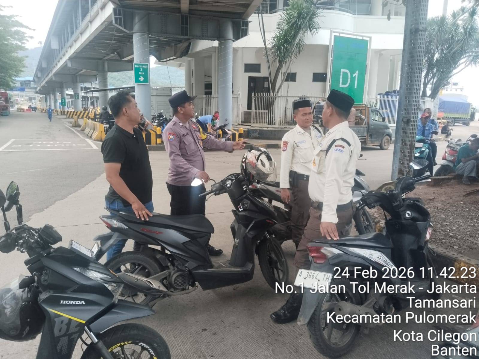 Cilegon - Personel Polsek Kskp Merak Polres Cilegon Polda Banten melaksanakan sambang dan patroli kawasan pelabuhan merak dalam rangka menjaga Harkamtibmas di Kawasan Pelabuhan Merak, Selasa (24/02/2026).