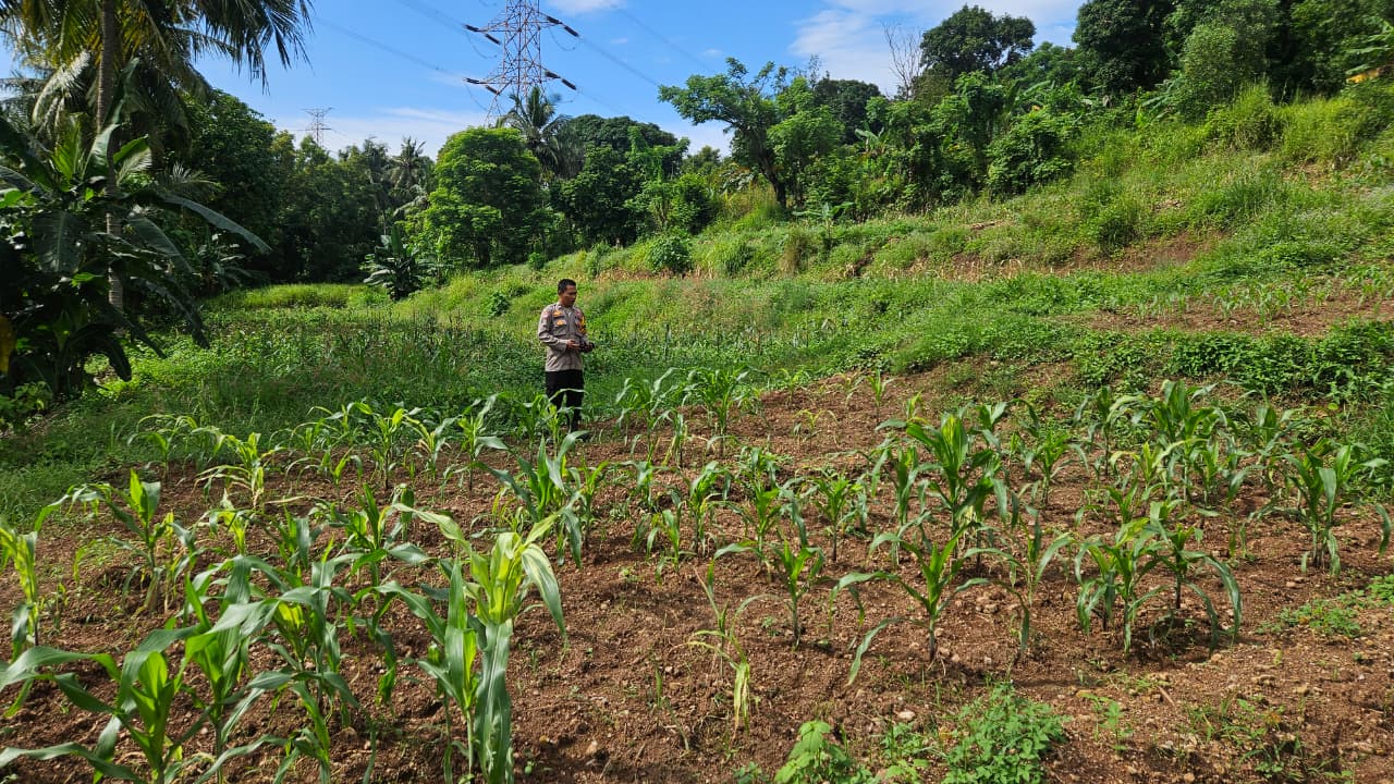 Bhabin Polsek Pulomerak Bahu Membahu dengan Kelompok Tani Lakukan pengecekan lahan Jagung