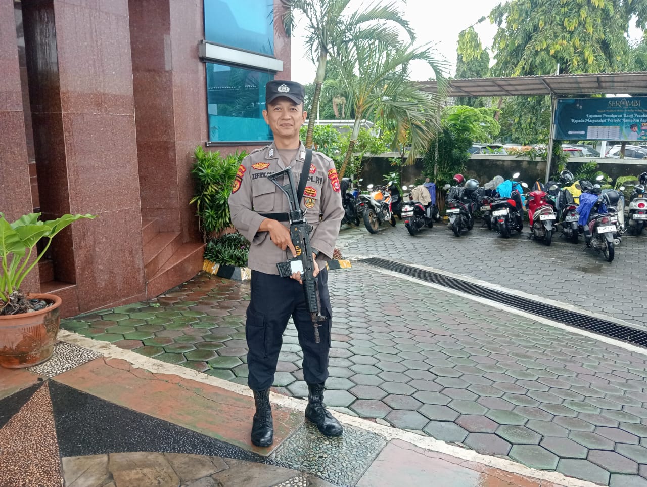 Polres Cilegon lakukan pengamanan dilengkapi dengan senjata laras Panjang. rabu