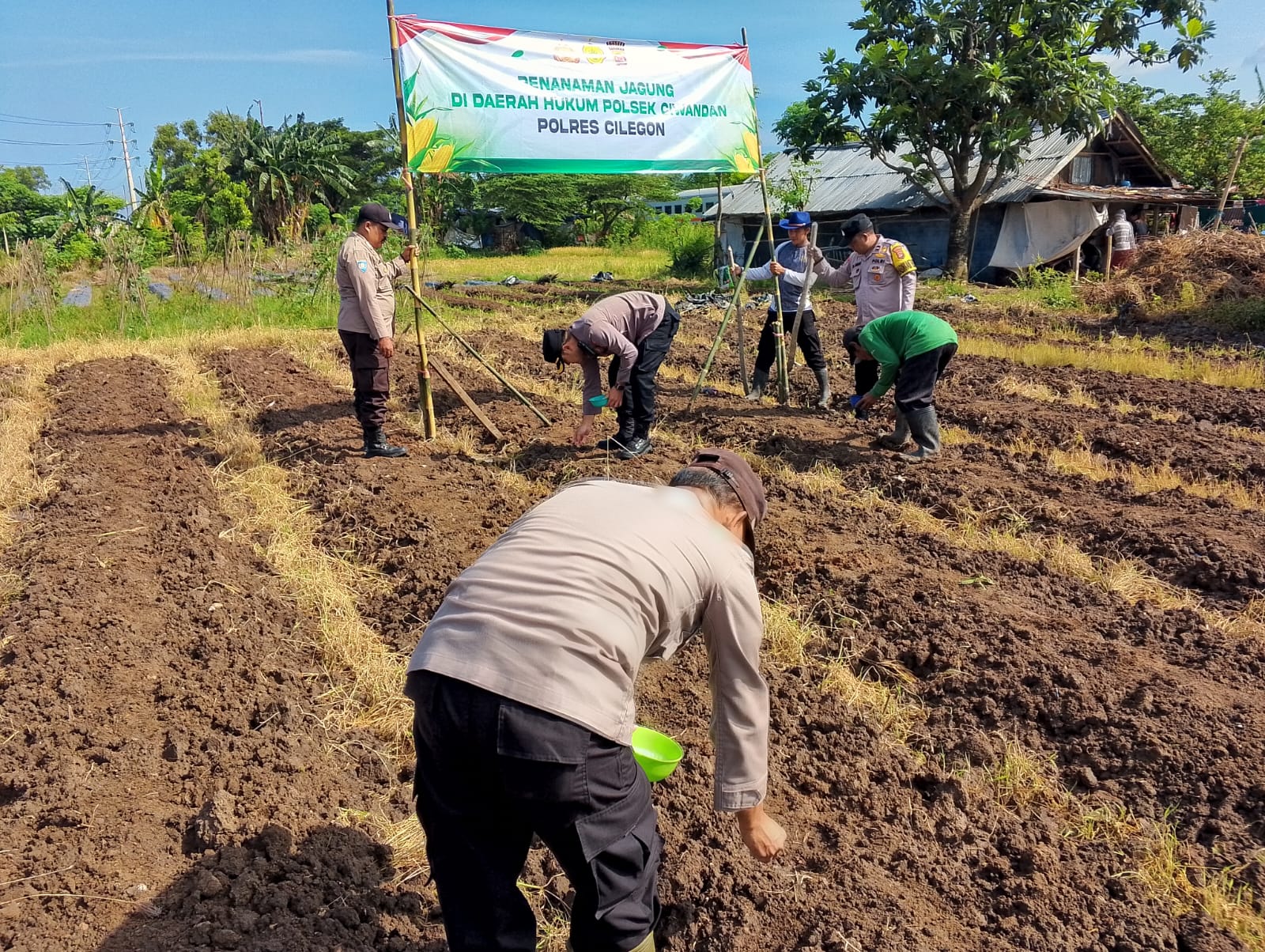 Kegiatan penanaman jagung jenis hibrida ini merupakan program Bapak Presiden RI untuk mendukung swasembada pangan. Polres Cilegon serentak melaksanakan penanaman seluas 10 ha di beberapa titik di kota Cilegon, seperti di Kec. Ciwandan, Kec. Citangkil, dan Kec. Cilegon.