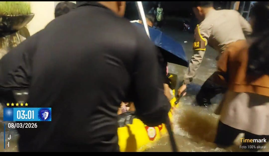 Hujan Deras Sebabkan Genangan, Polres Cilegon Evakuasi Warga di Perumahan Metro