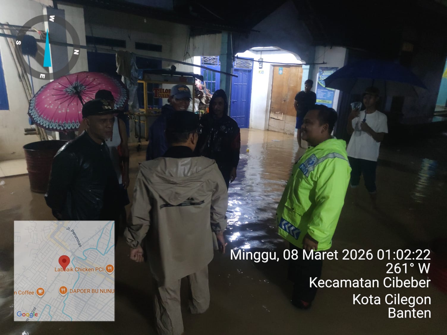 Upaya Penanganan Banjir di Cilegon : Polsek Cibeber dan Camat Cibeber Lakukan Patroli Genangan Air