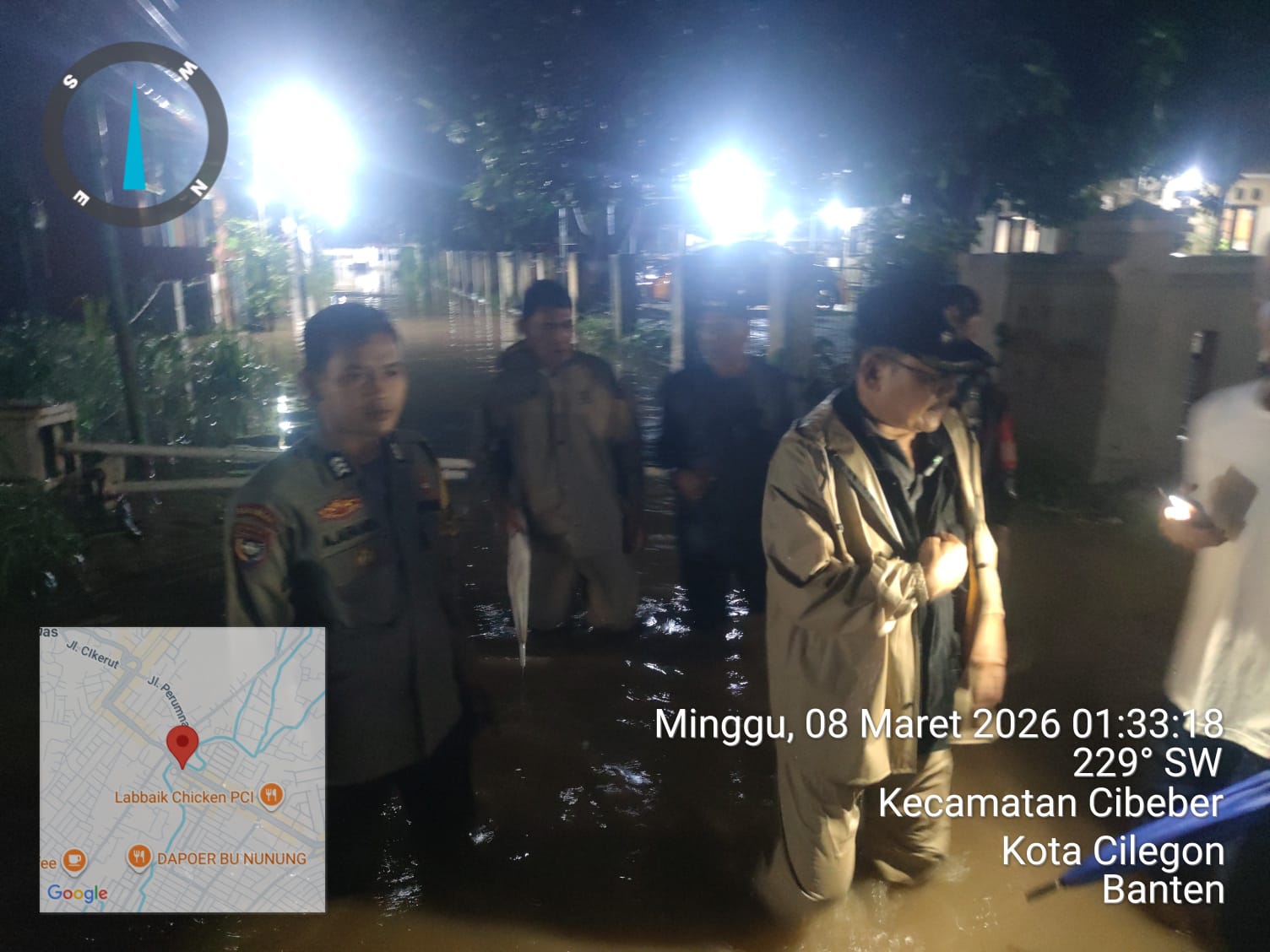 Camat Cibeber dan dibantu dengan warga sekitar melakukan patroli genangan air
