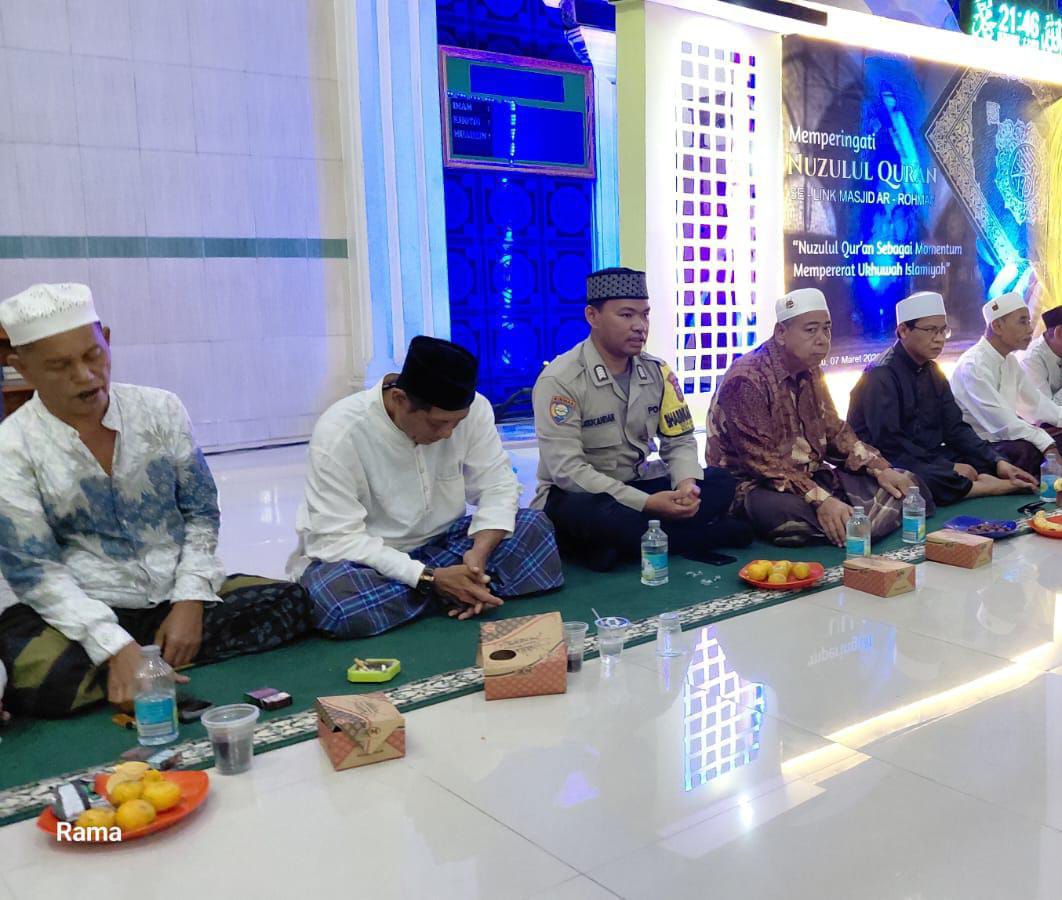 Rilis:Personel Polsek Anyar Polres Cilegon Polda Banten menghadiri kegiatan peringatan Nuzulul Qur’an yang dilaksanakan di Masjid At Rohman, Kampung Sirih Lor Desa Bandulu Kecamatan Anyar. Minggu (08/03)