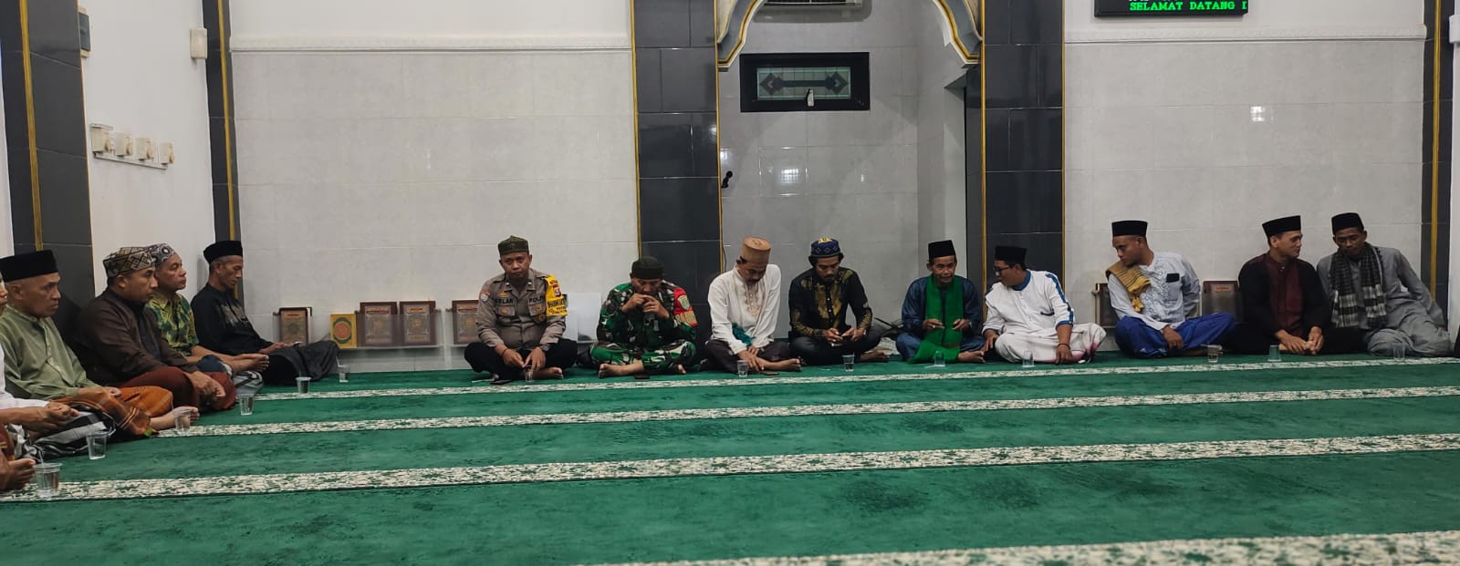 Kapolres Cilegon Polda Banten AKBP Dr. Martua Raja Taripar Laut Silitonga Melalui Kapolsek Ciwandan Polres Cilegon Polda Banten KOMPOL Achri Dwi Yunito Mengatakan Usai Sholat Isya berjamaah, Bhabinkamtibmas menyempatkan untuk menyampaikan himbauan/pesan Kamtibmas kepada para jemaah Masjid Al-ittihad Lingkungan kapudenok akil kelurahan lebak denok kecamatan Citangkil kota Cilegon.