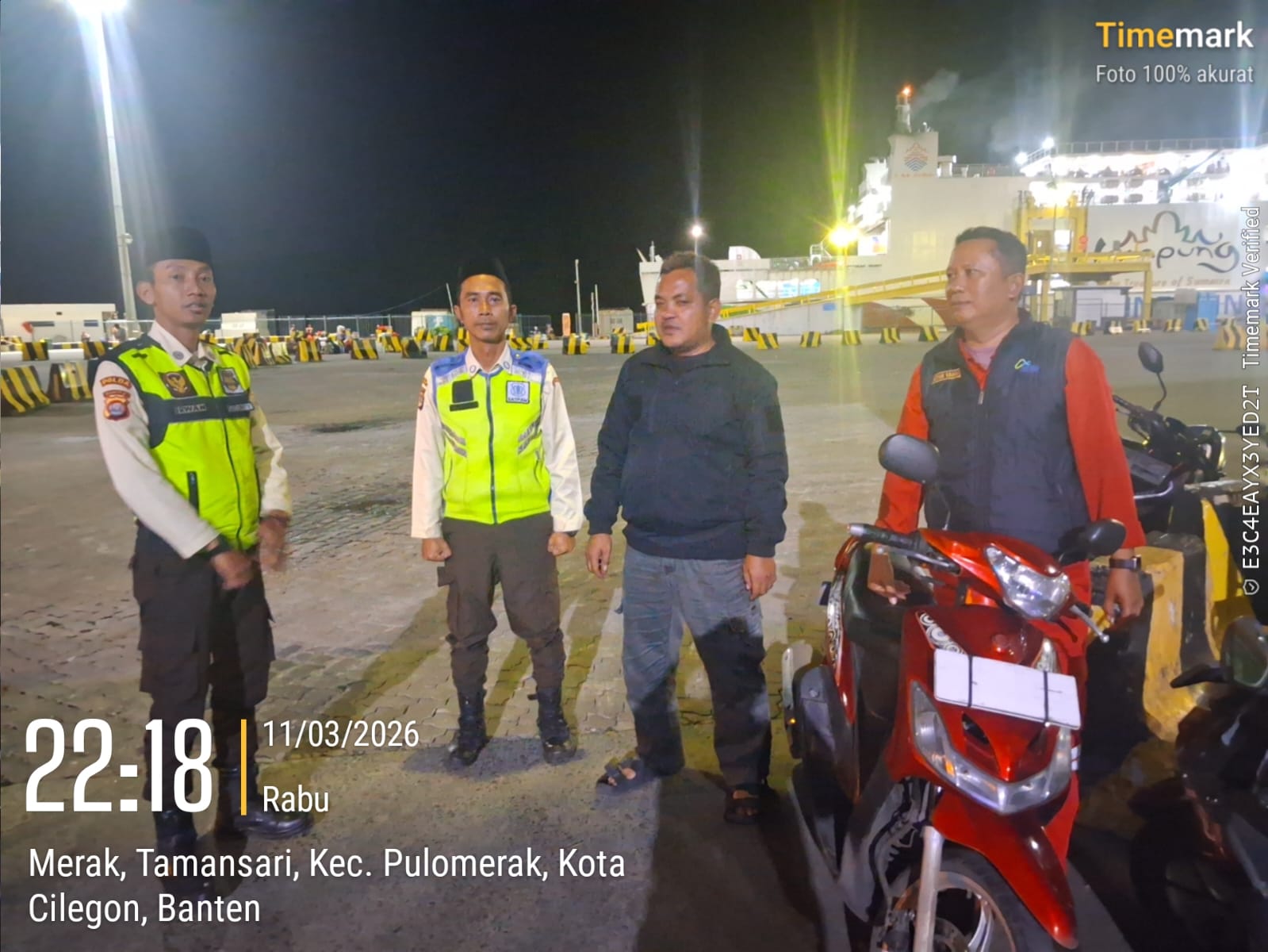 Cilegon - Personil Polsek Kskp Merak Polres Cilegon melaksanakan patroli di kawasan pelabuhan merak memberikan rasa aman dan damai, Rabu (11/03/2026)